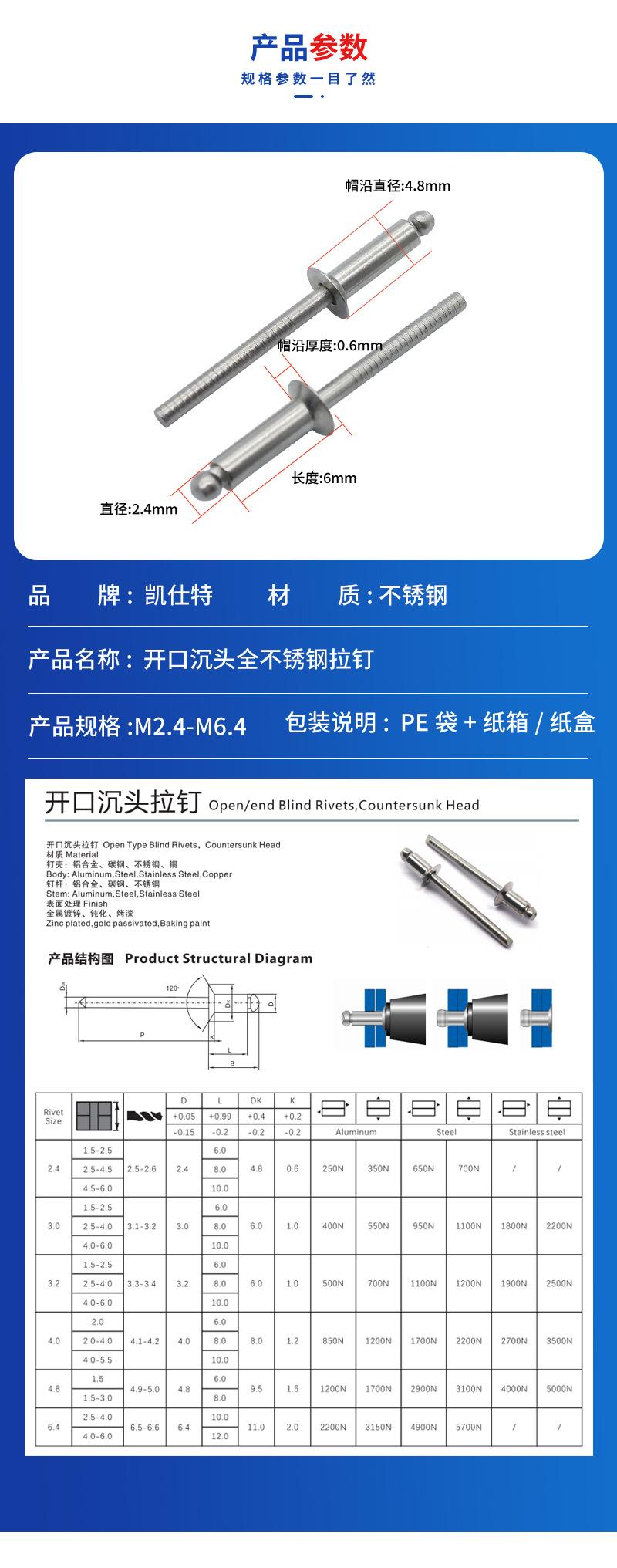 Clavos de extracción de acero inoxidable avellanados con cabeza abierta, remaches ciegos 304, clavos de extracción de acero inoxidable GB para la industria de la construcción