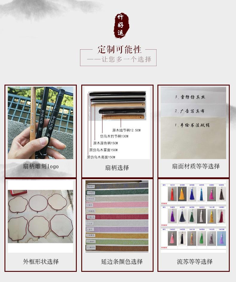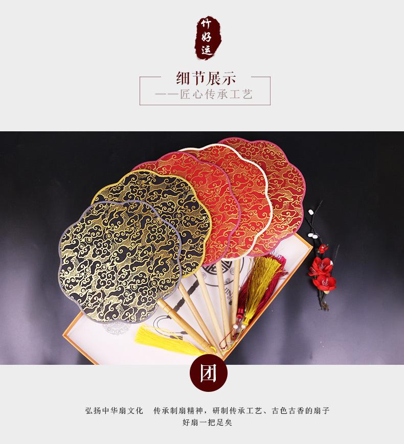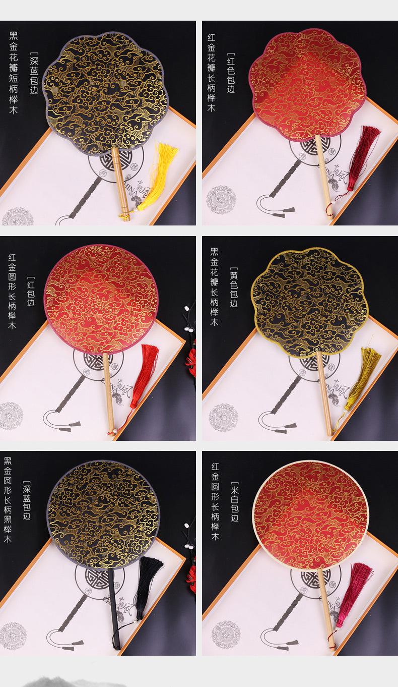 Abanico de dama de honor al por mayor, nuevo abanico de baile chino personalizado, abanico de mango Hanfu translúcido, abanico Tuan de bienvenida personalizado