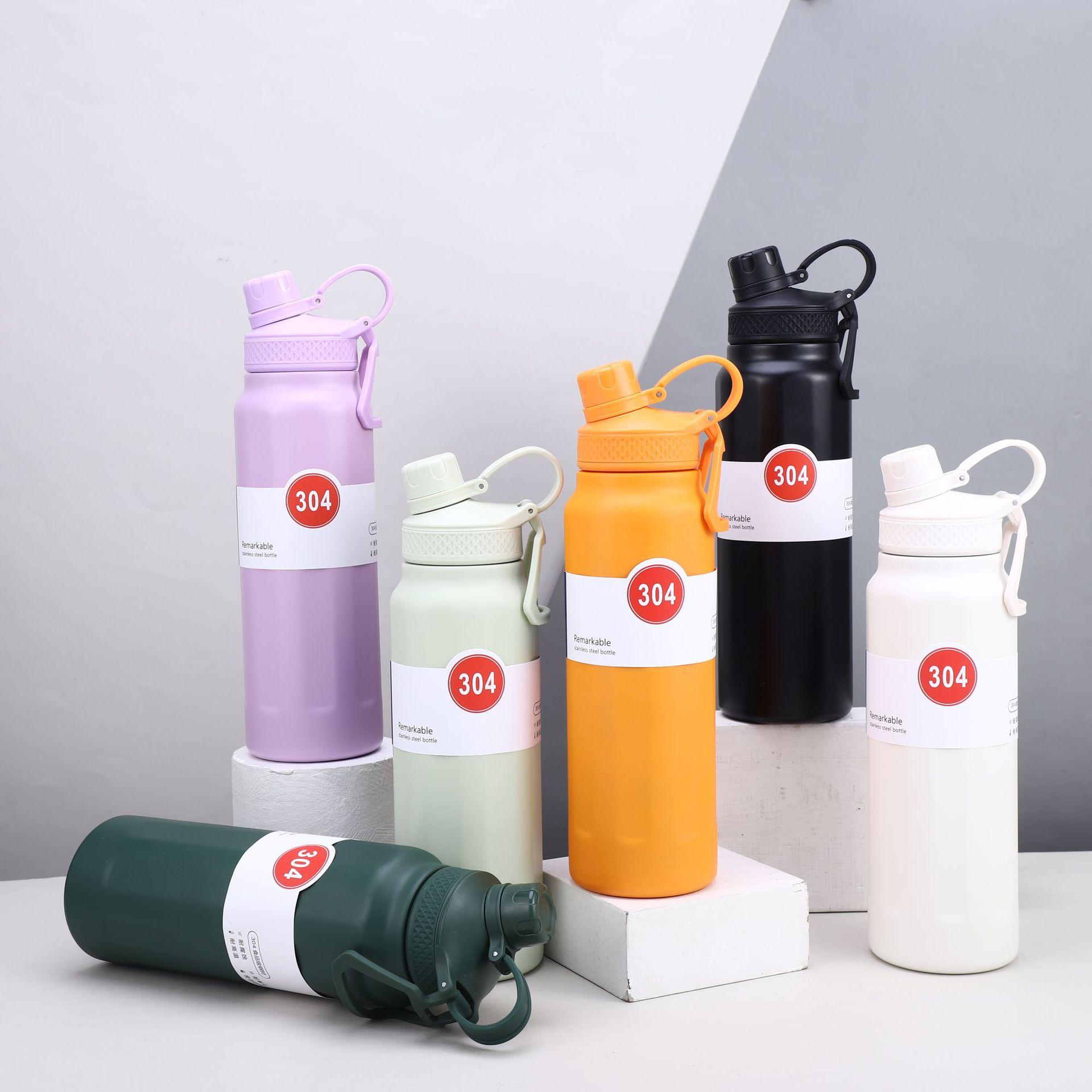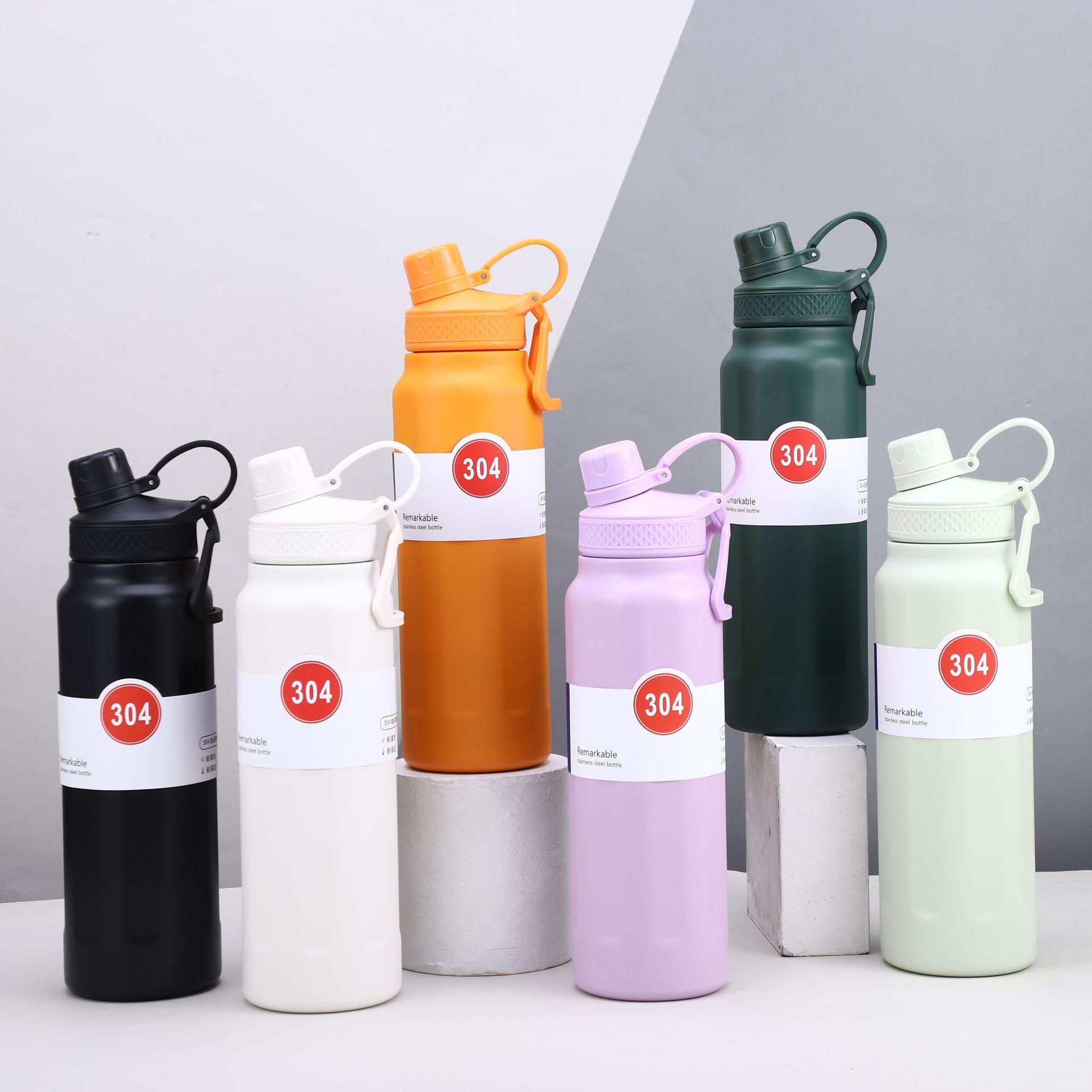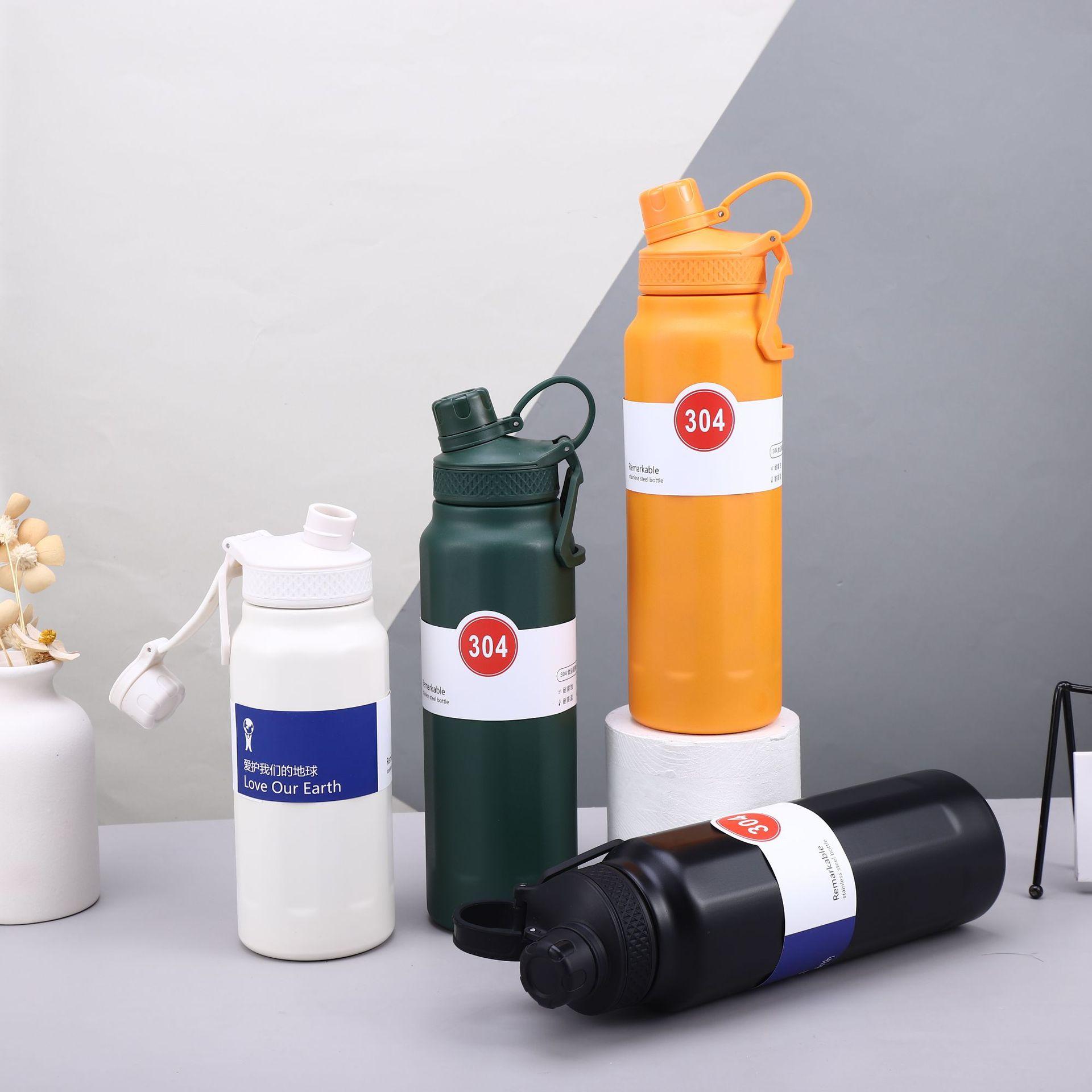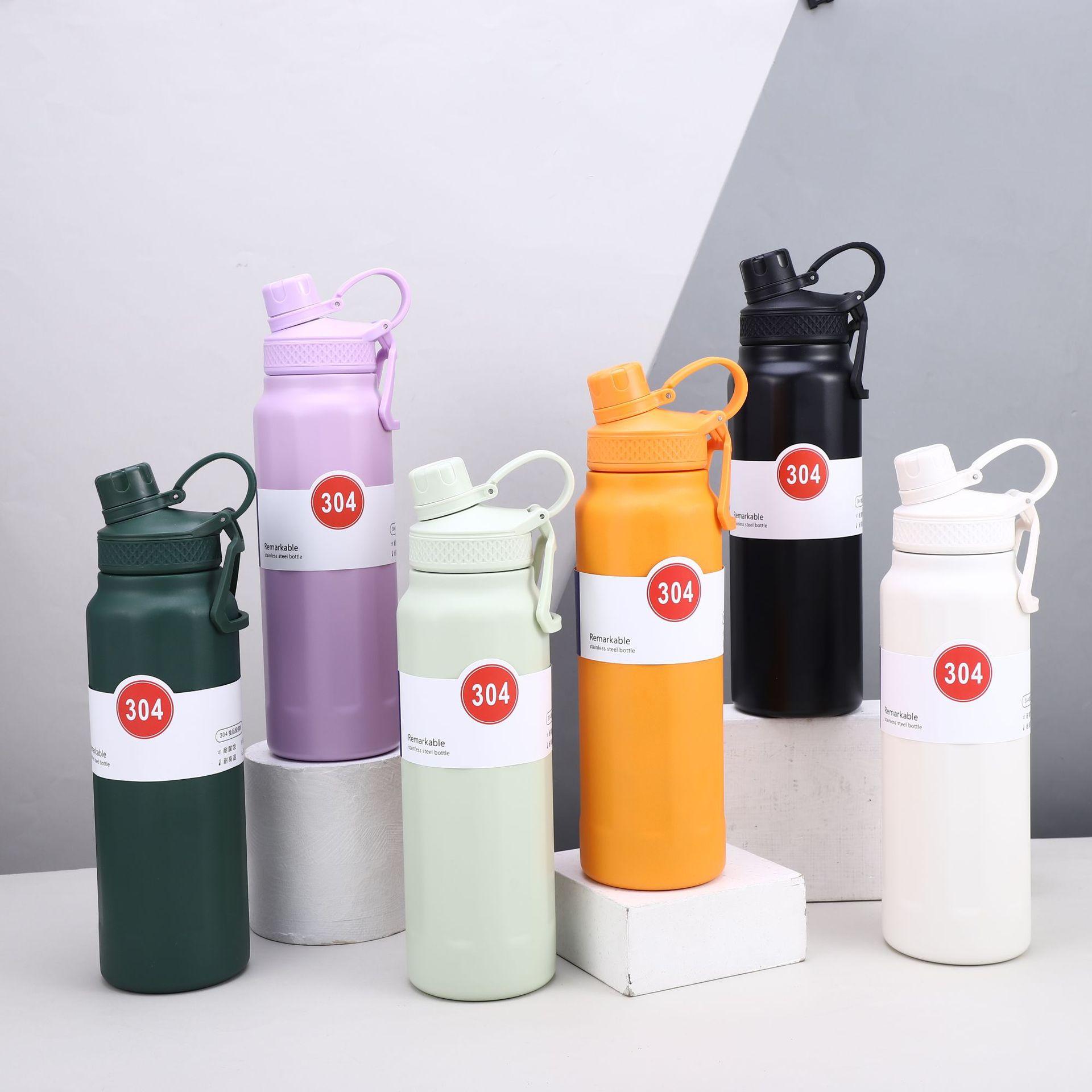 Nuevo termo deportivo transfronterizo de acero inoxidable 304 de gran capacidad, con asa exterior, olla para escalar, taza termo portátil de color sólido