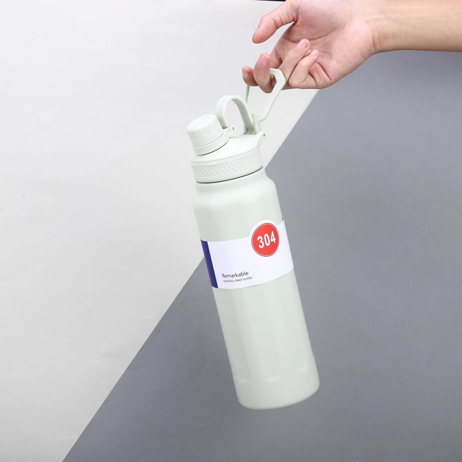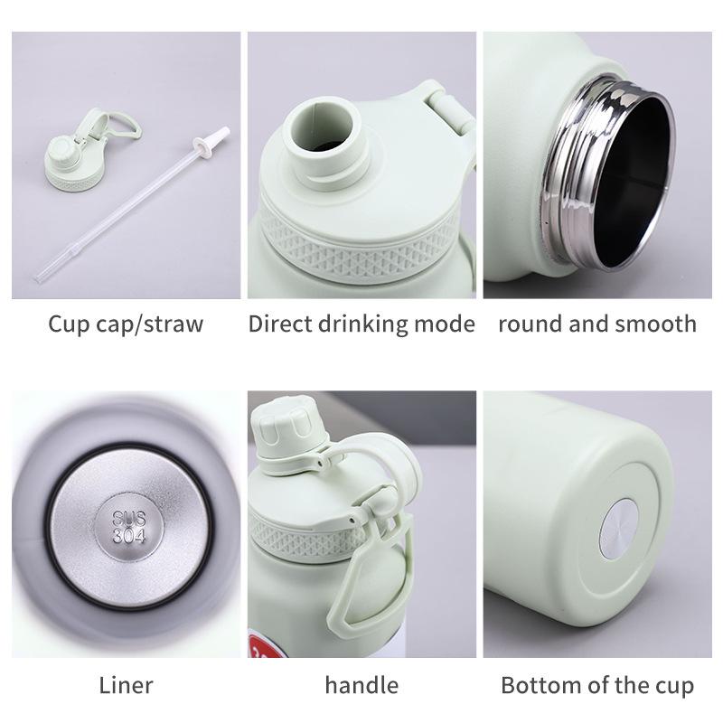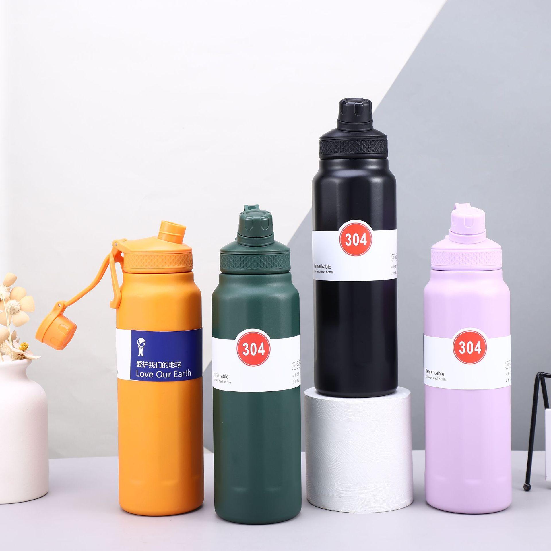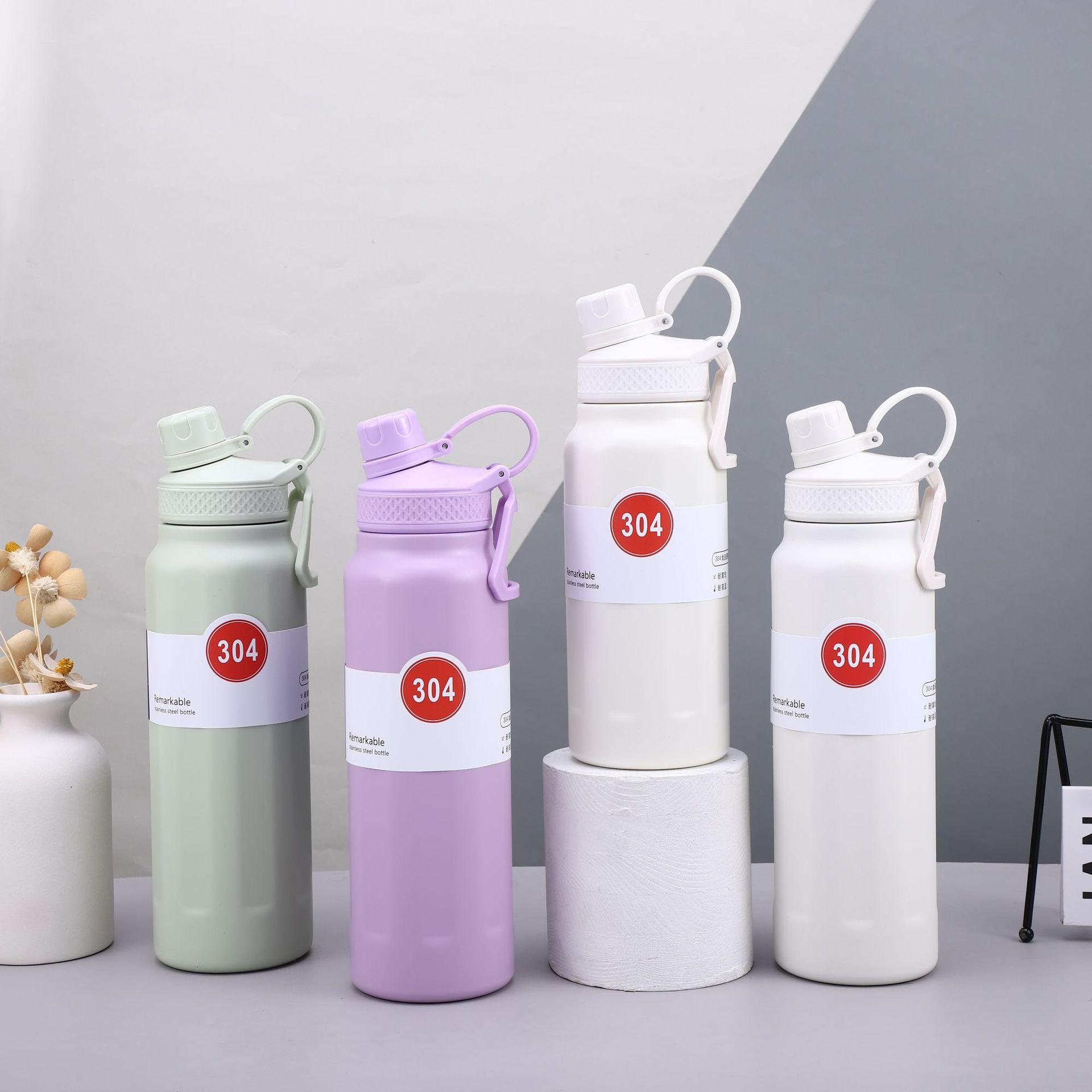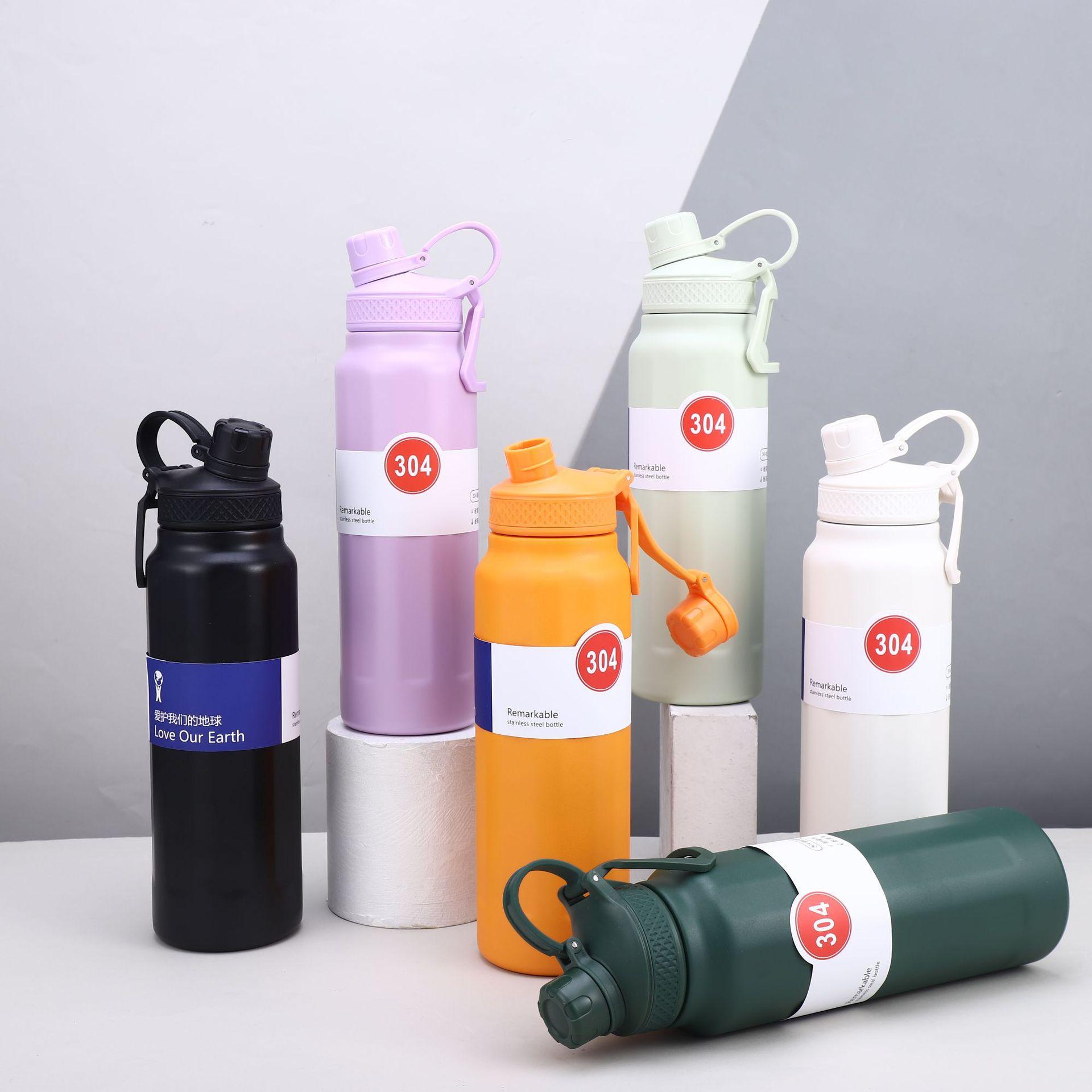 Nuevo termo deportivo transfronterizo de acero inoxidable 304 de gran capacidad, con asa exterior, olla para escalar, taza termo portátil de color sólido