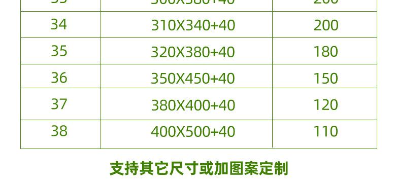 165*220 650/box, 250*300 300/box, 110*130 1500/box, 290*360 200/box, 220*250 400/box, 150*180 850/box, 180*230...