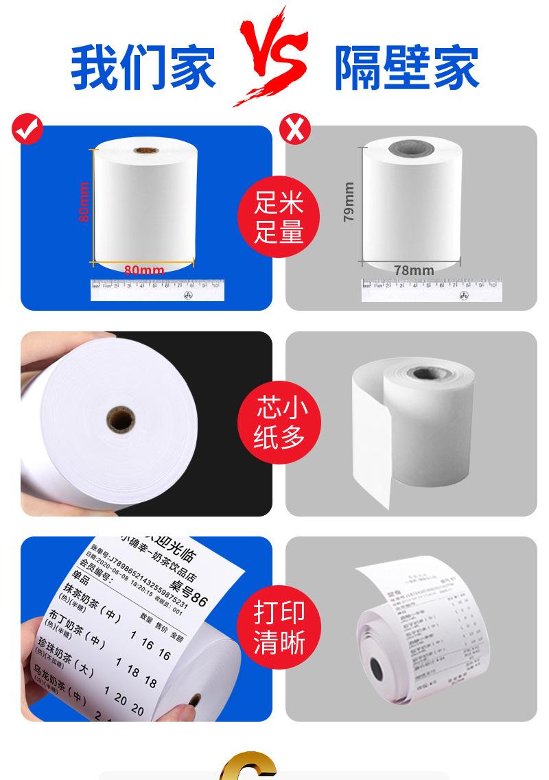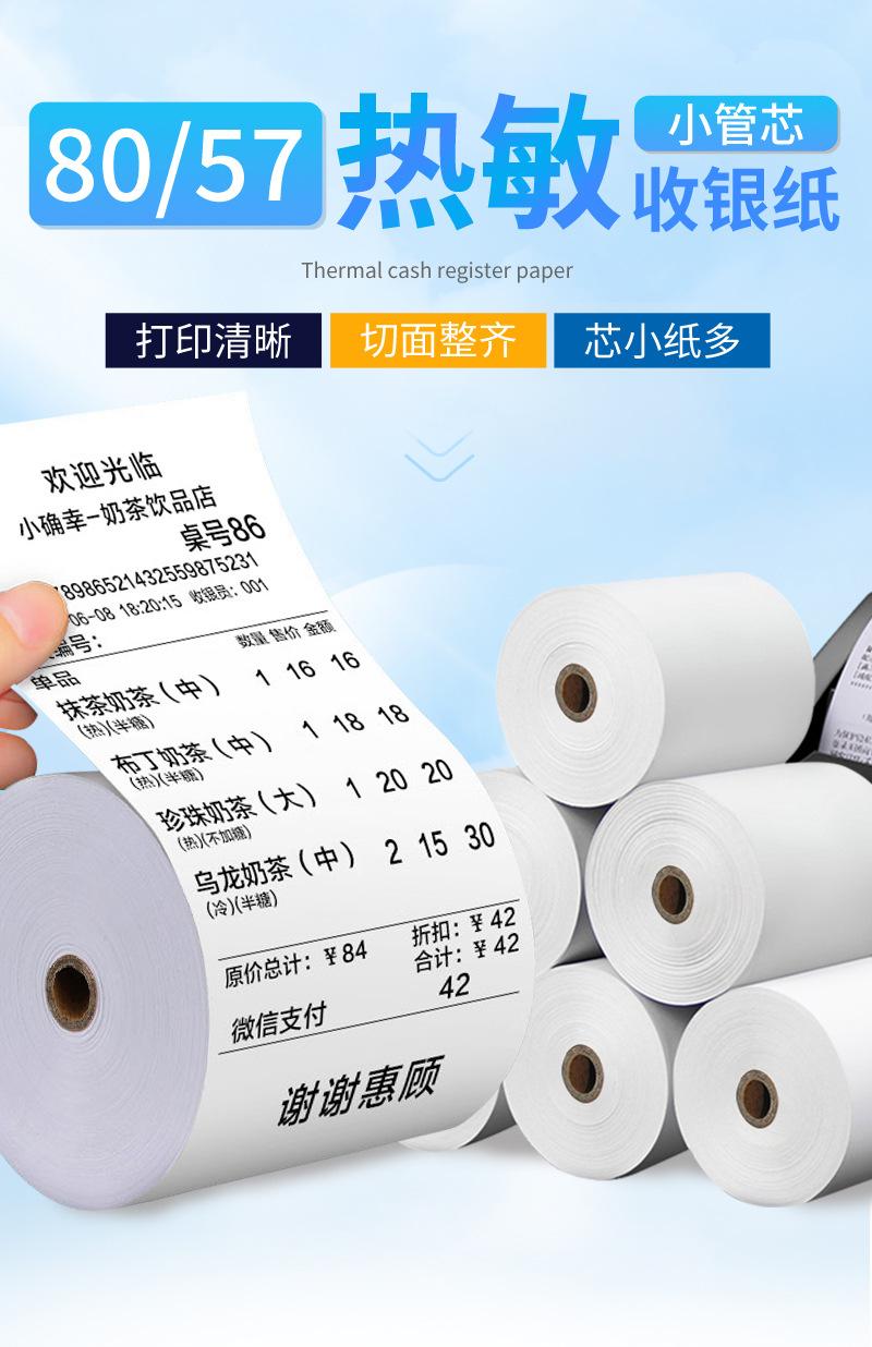 Papel para caja registradora de supermercado 57x50x40x30 papel térmico para caja registradora papel térmico para entrega a domicilio de Meituan 80x80 papel para impresión de recibos
