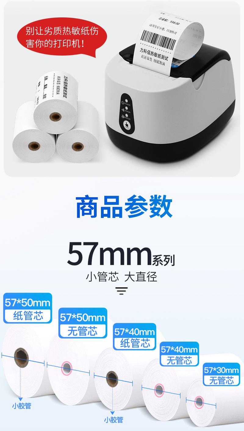 Loss-loss quantity 57x50 (100 rolls/box) without tube core, 57*30* 5m (100 rolls/carton) paper tube core, 57*4...