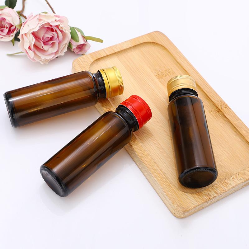 Botella de líquido oral de vidrio marrón de 50 ml al por mayor de fábrica Botella sellada a prueba de luz marrón Subbotella de pulpa de arándano Botella vacía