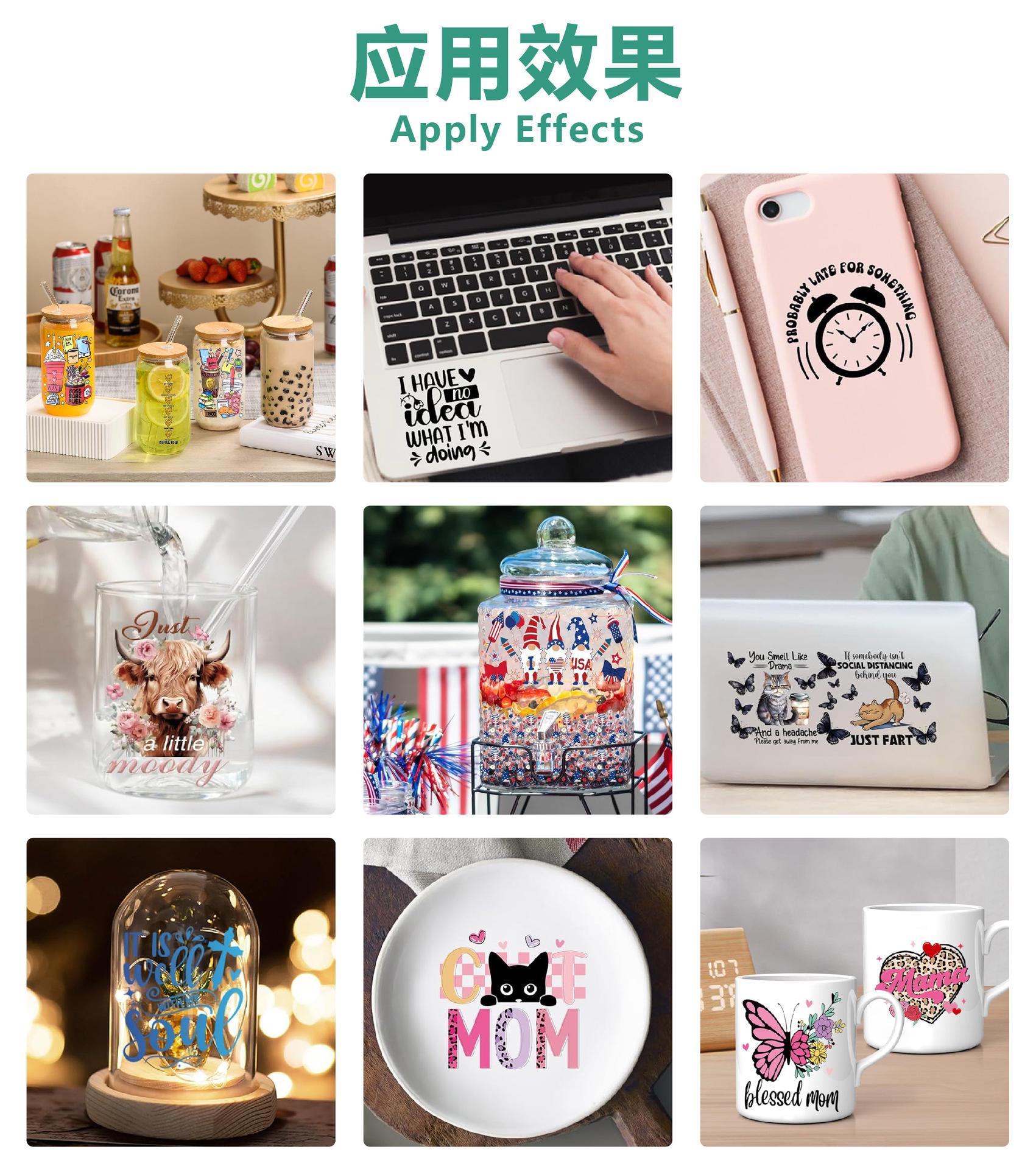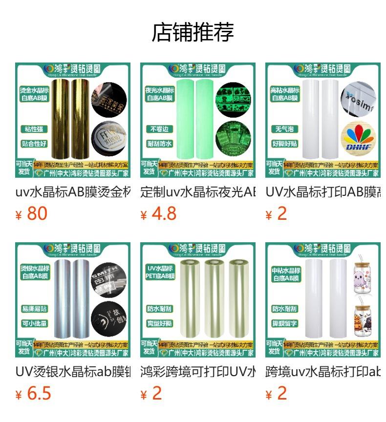 Impresión de Etiquetas de Cristal UV Transfronteriza Película AB Viscosidad Media Fondo Blanco Película de Transferencia Impermeable Película Desprendible con Texto 30/60cm Personalización