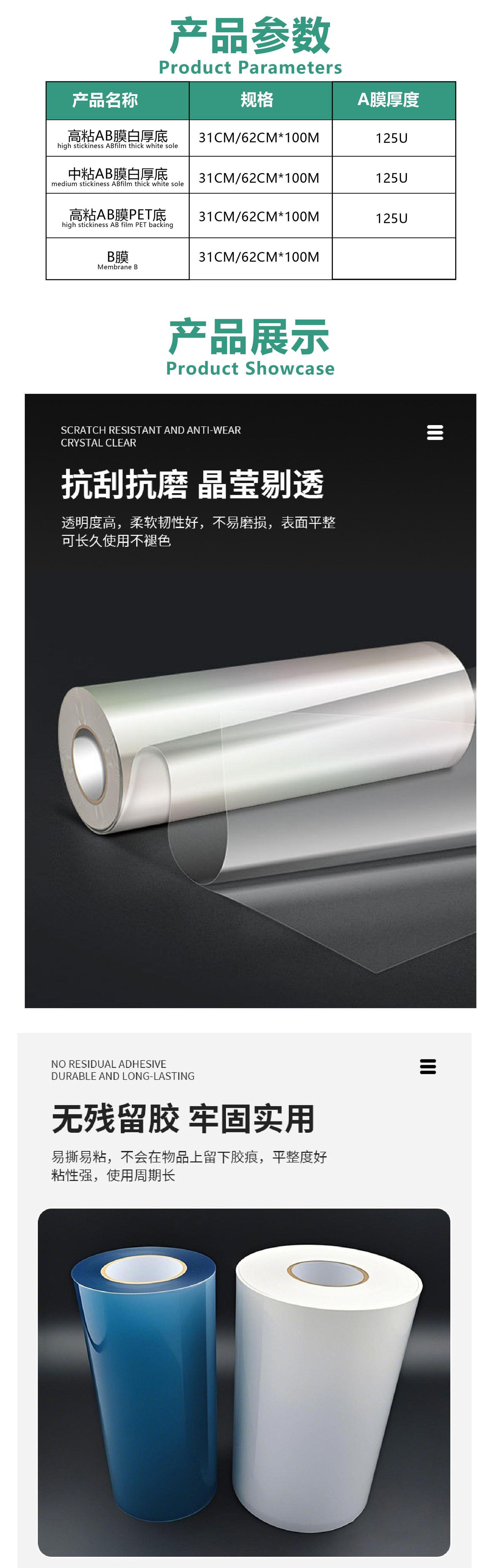 Medium sticky white thick bottom crystal label ab film 0.2 square meters