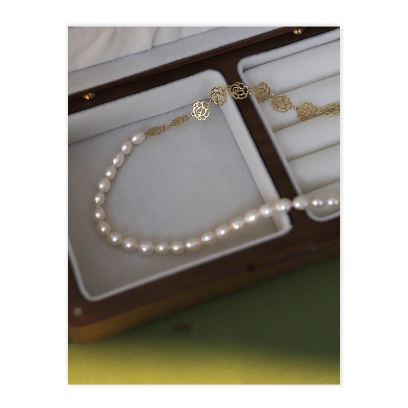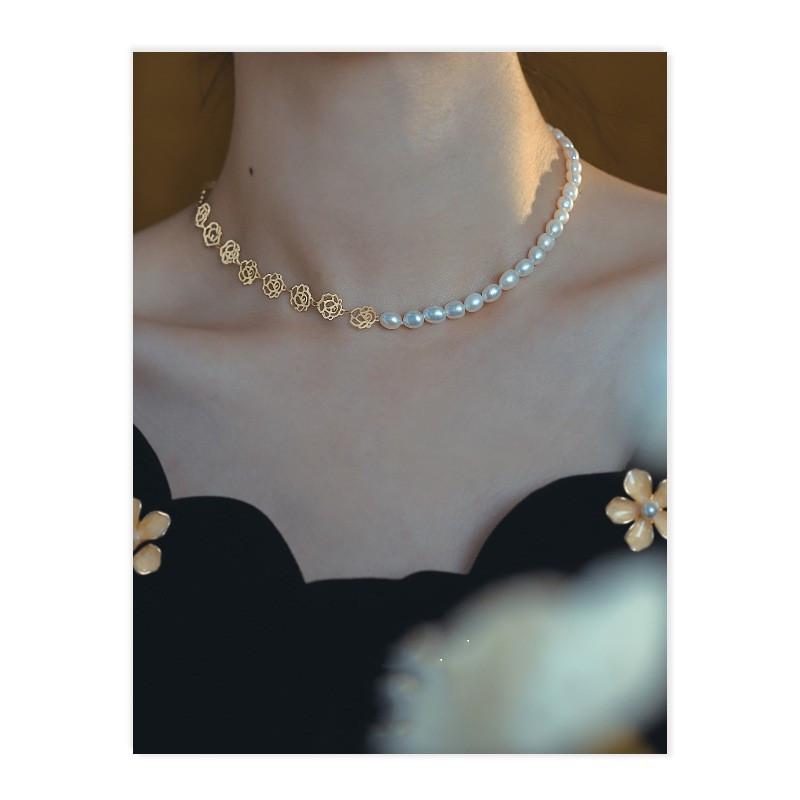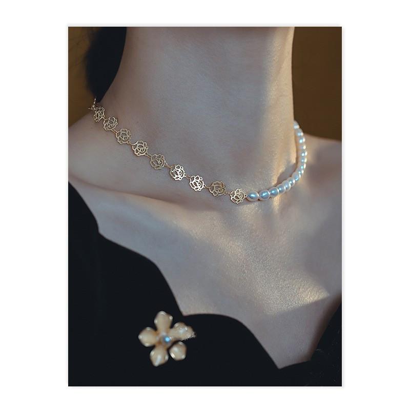 Nuevo Collar Asimétrico de Perlas de Agua Dulce para Mujer Cadena de Alta Gama Retro Moda Forma de Flor Cadena Clavícula Accesorios Elegantes