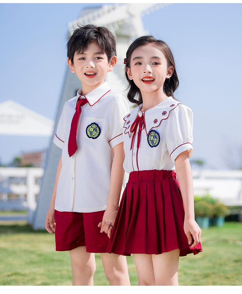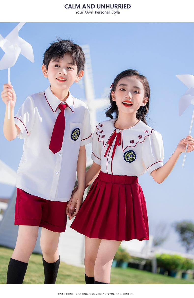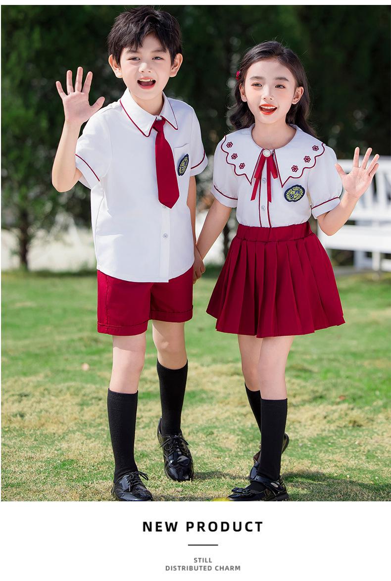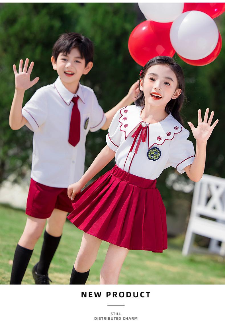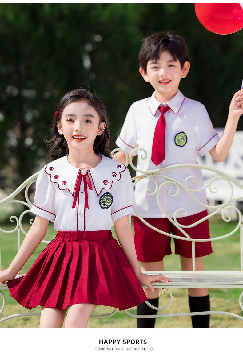 Uniforme de escuela primaria de verano, uniforme de clase, traje de fotos de graduación de manga corta, uniforme de jardín de infantes de primer grado de verano para niños de la universidad
