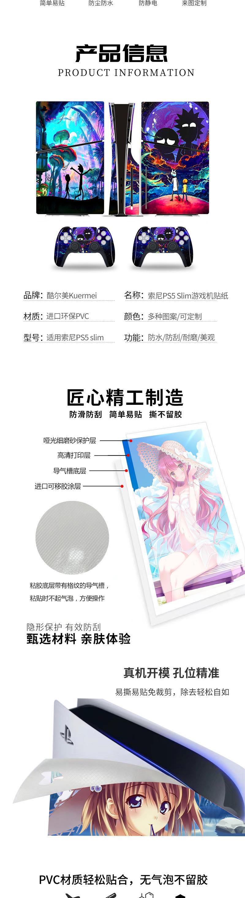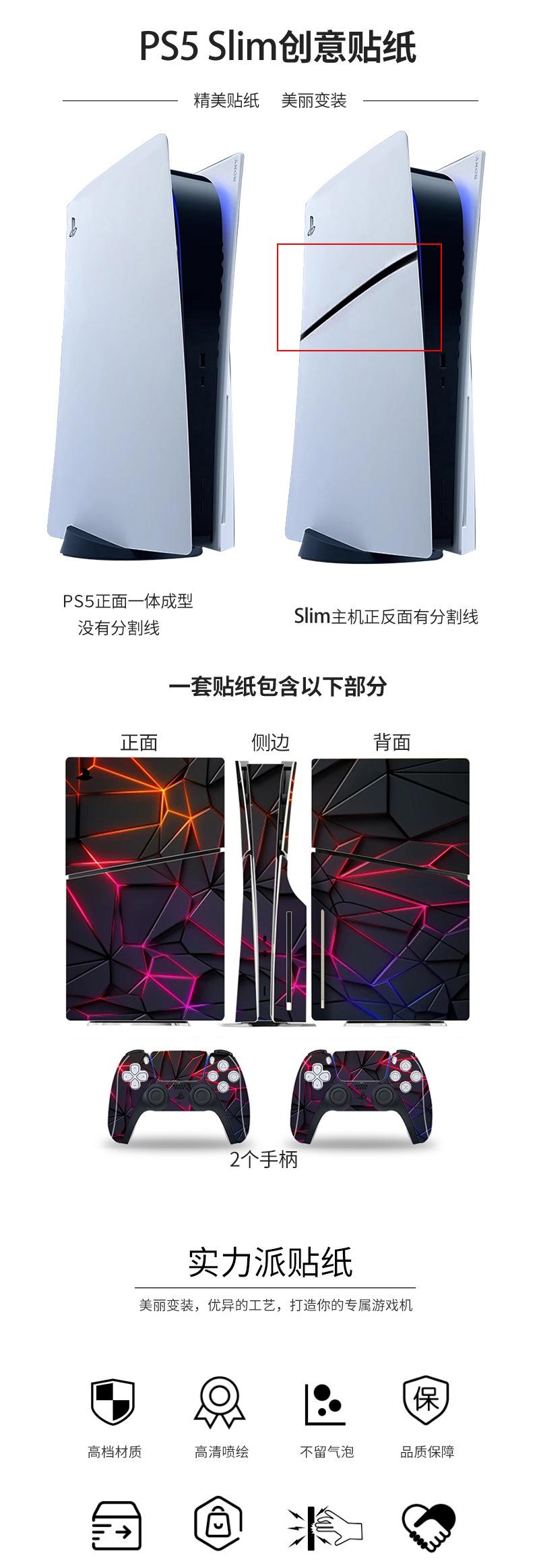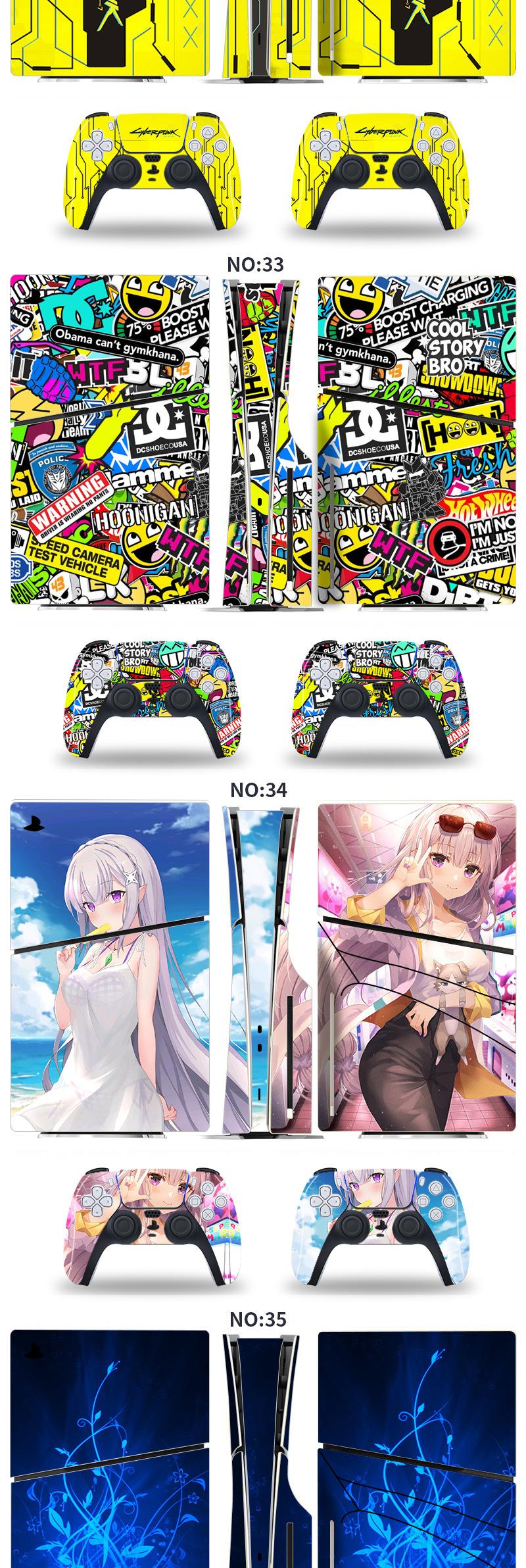 Pegatina para máquina de juegos PS5 Slim, película protectora de color, pegatina adhesiva para piel, CD-ROM digital, película de dibujos animados