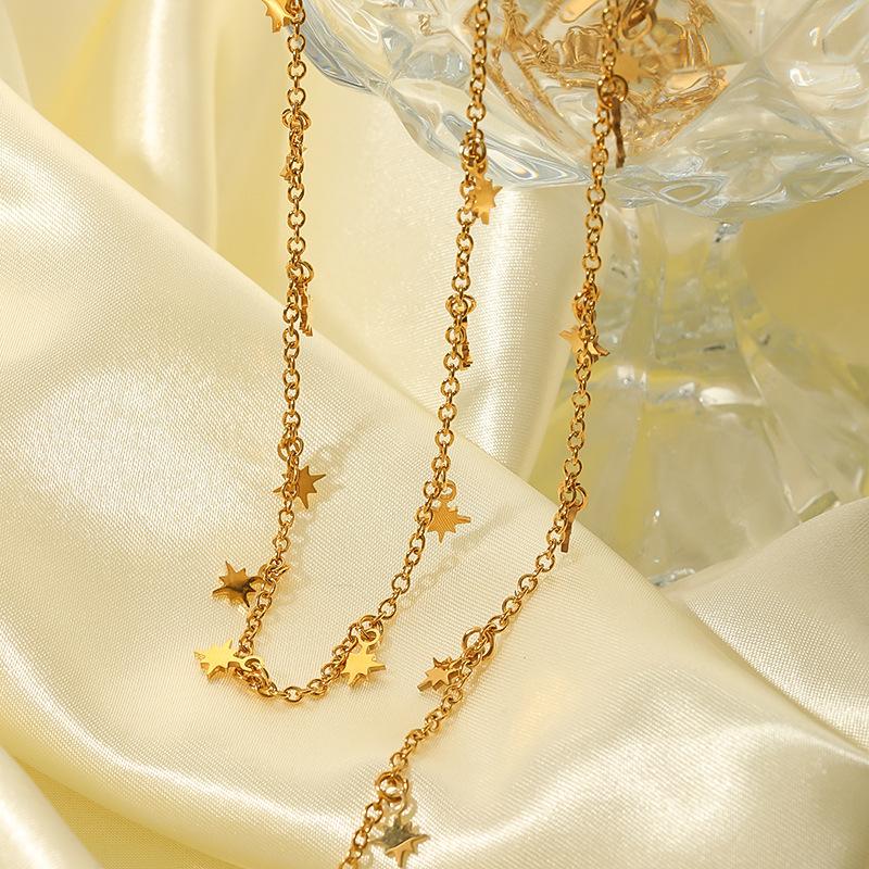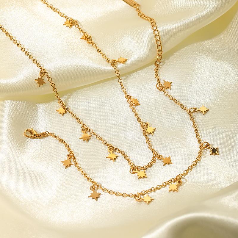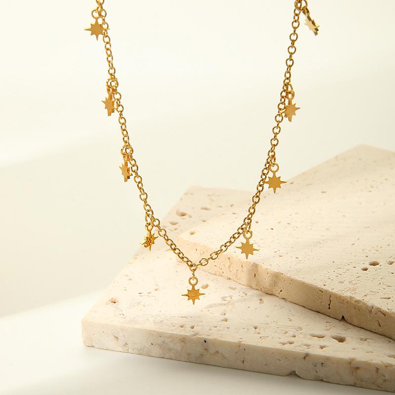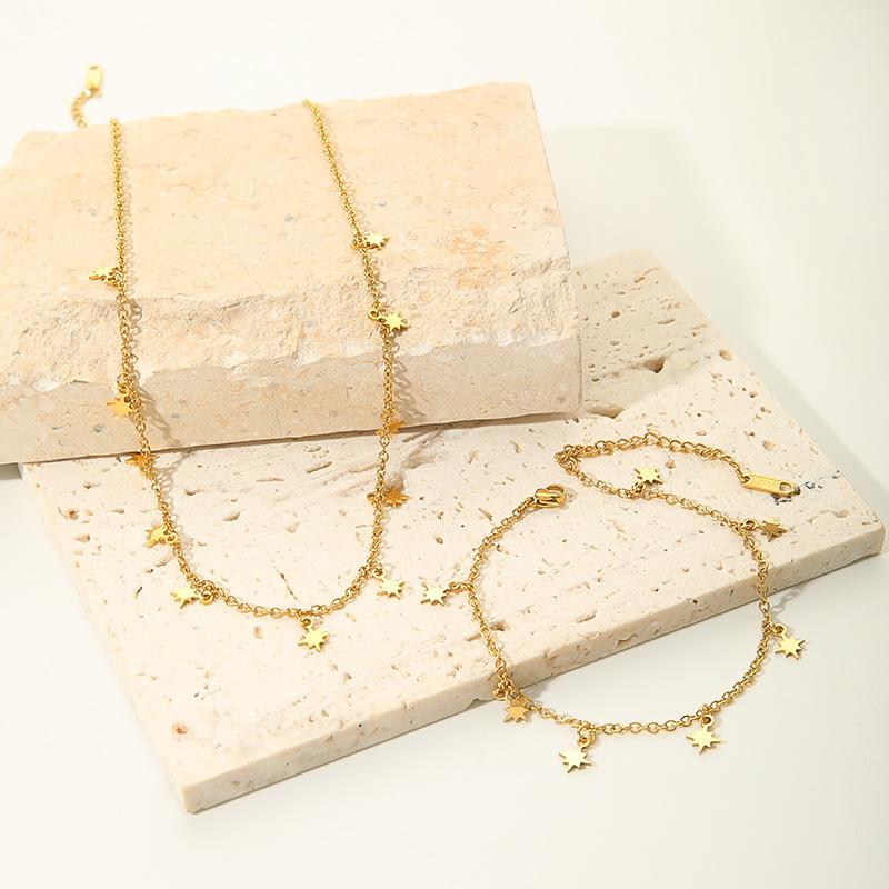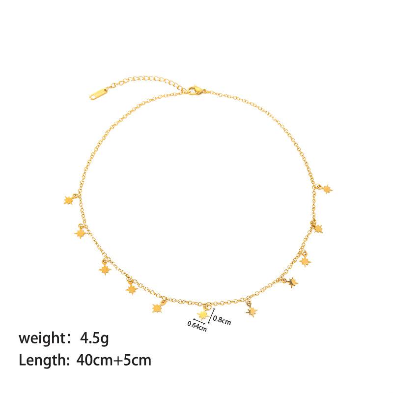 Collar de mujer transfronterizo de moda con diseño simple y sentido del estilo, collar de estrella de cinco puntas de la suerte de acero inoxidable en oro de 18 quilates, pulsera al por mayor