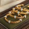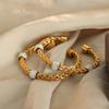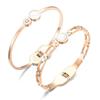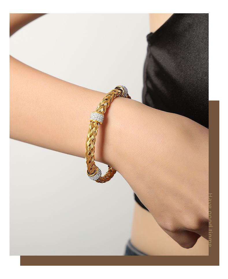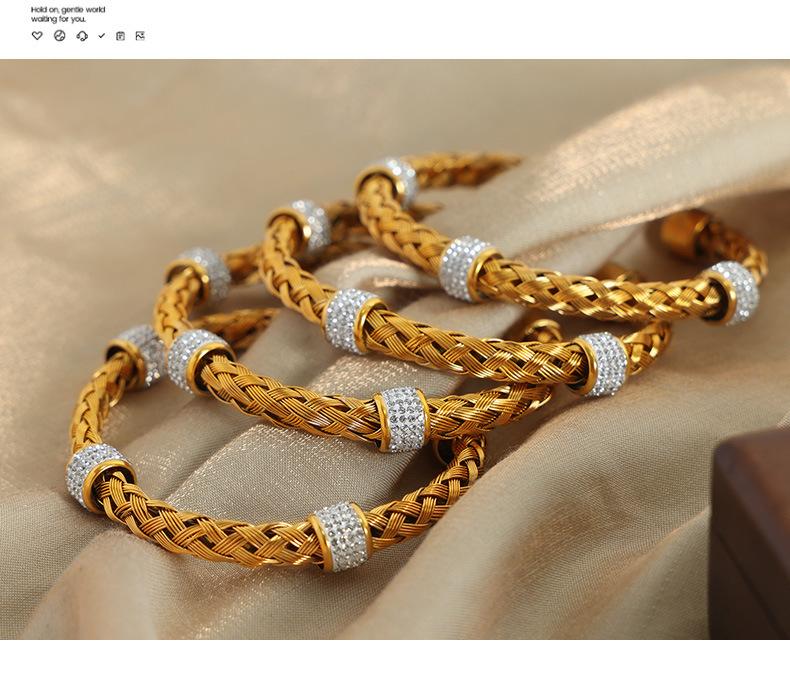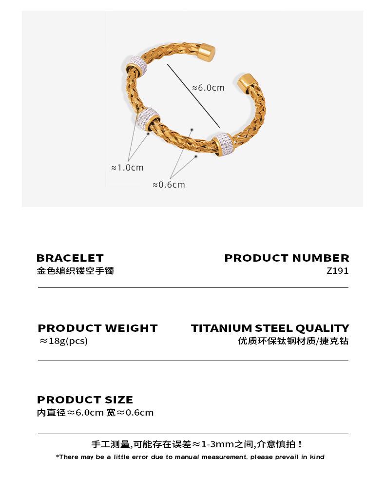 Estilo Chic Moda Personalizado Estilo Lujo Ligero Joyería Anillo de Diamantes Adhesivos Colgante Diseño Tejido Calado Acero Titanio Brazalete Abierto