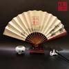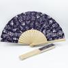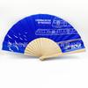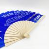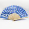 Abanico de madera personalizado de fábrica, azul, plegable, creativo, publicitario, regalo, abanico de madera de hueso, hecho a mano, abanico de tela español.