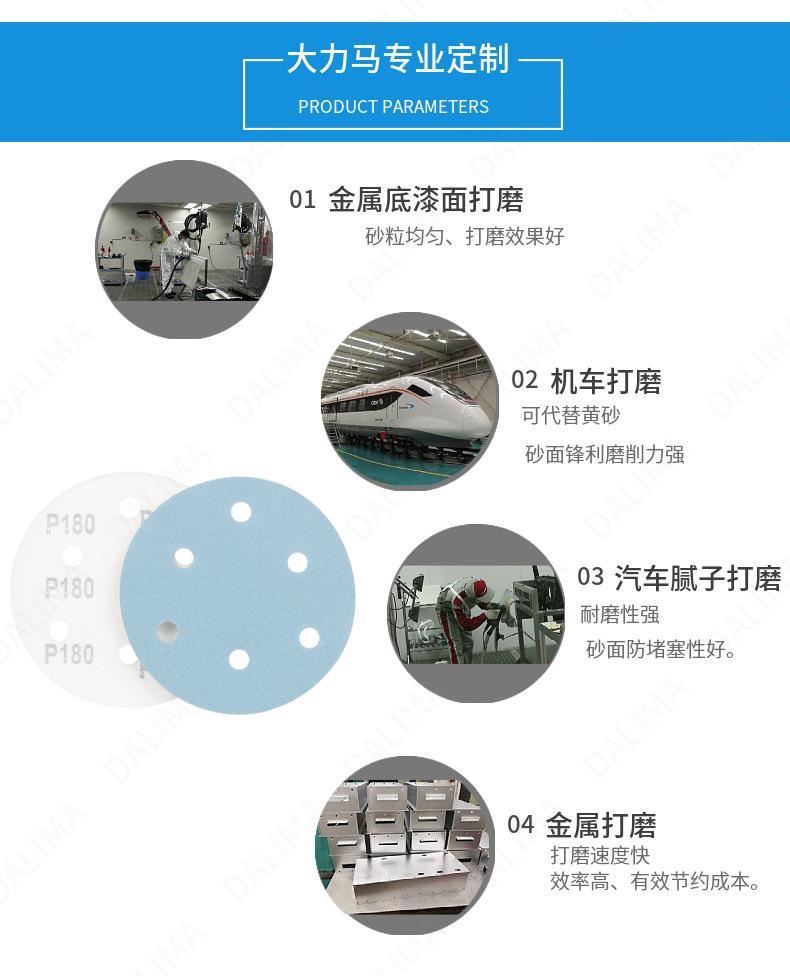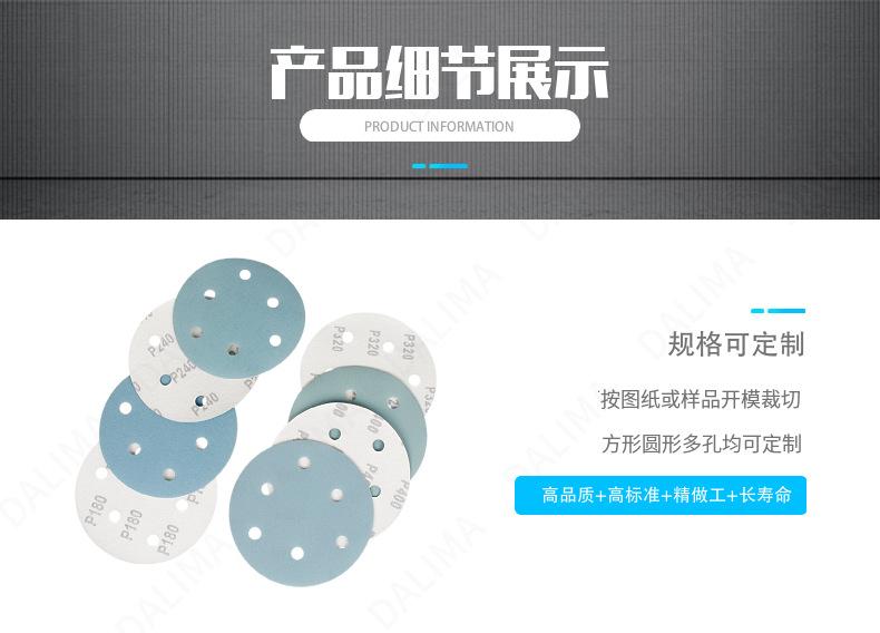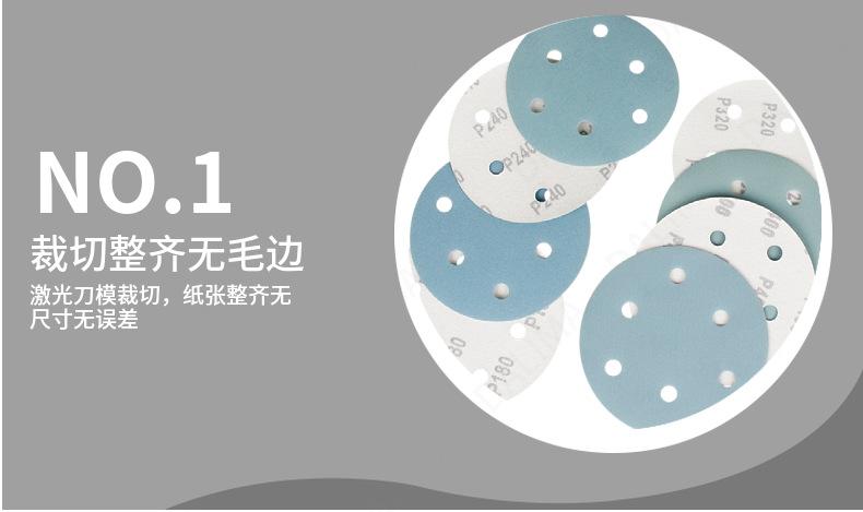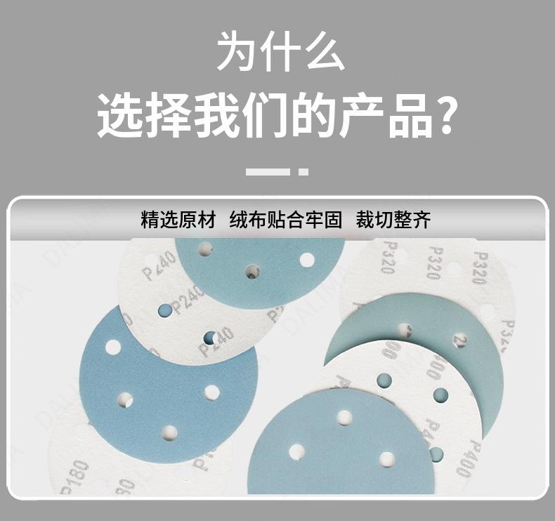Disco de lija de cerámica flocado azul de 5 pulgadas y 6 orificios de 122 mm para pulir metales de automóviles, pieza de lija, papel de lija de terciopelo, venta al por mayor