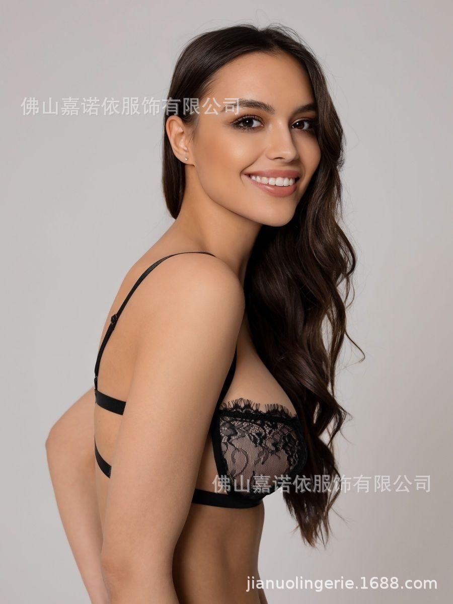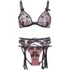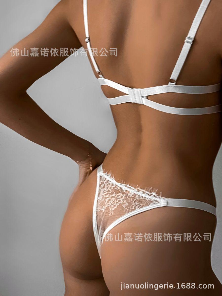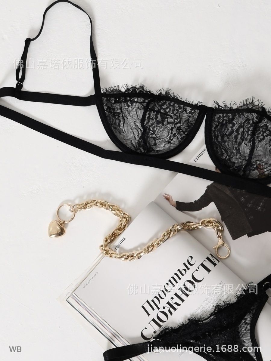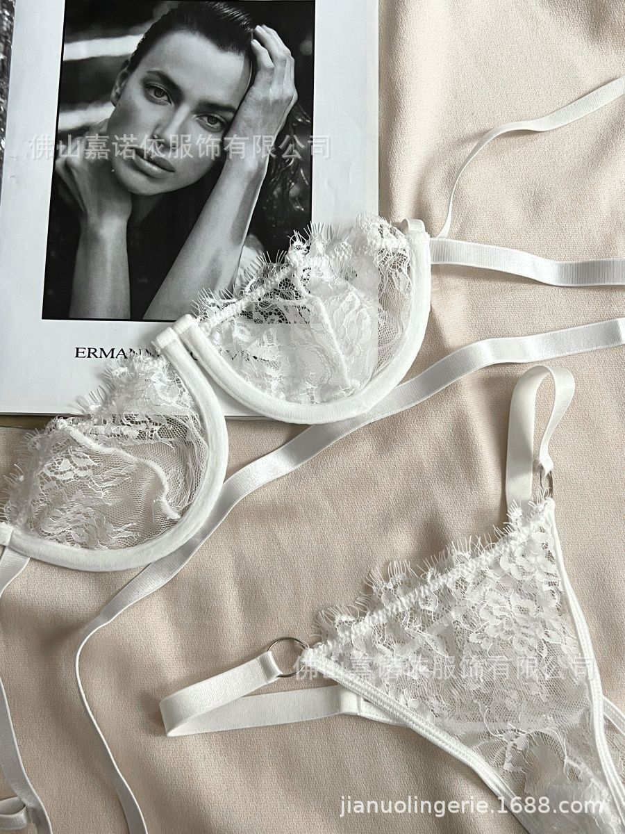 Sexy Encaje de Pestañas Patrón Perspectiva Calado con Aro de Acero Ropa Interior Sexy Conjunto de Tres Piezas 5936