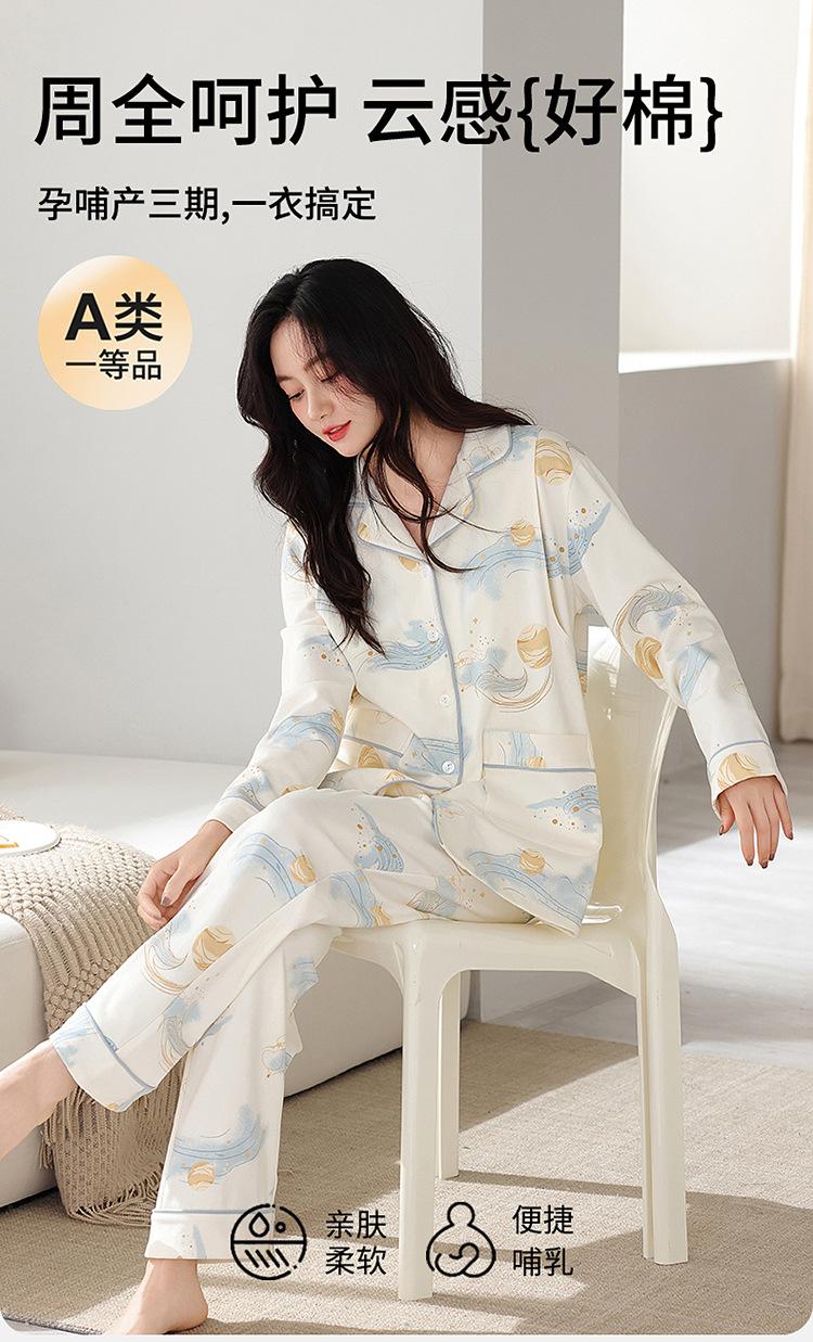 Ropa de confinamiento primavera y otoño pijamas de maternidad de lactancia posparto de algodón puro de doble cara Ropa de maternidad de lactancia de otoño e invierno de confinamiento