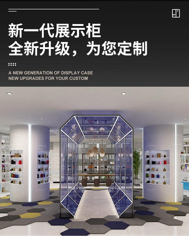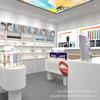 Vitrina de madera pintada de blanco para centro comercial, salón de belleza de lujo, estantería de exhibición, sala de exposiciones, estantería de exhibición de productos.