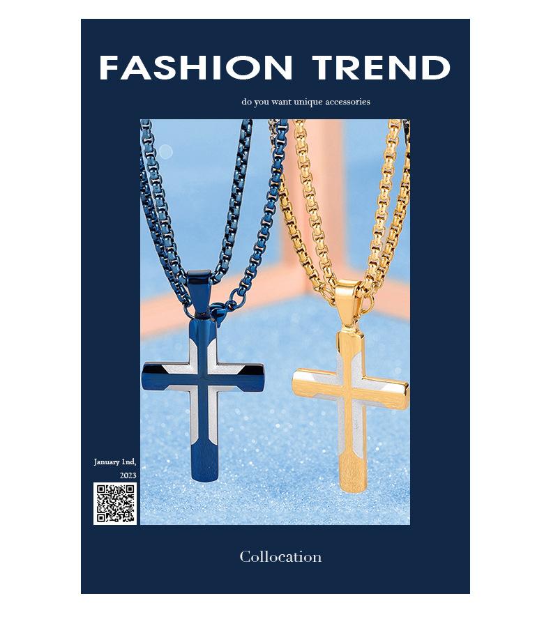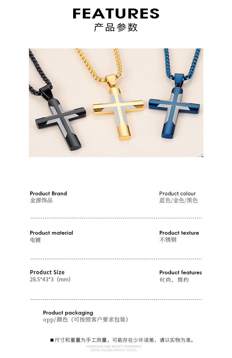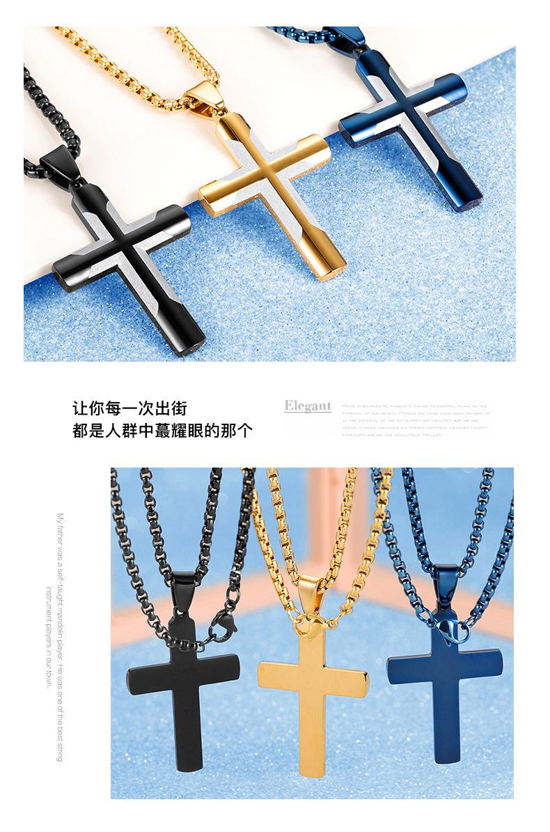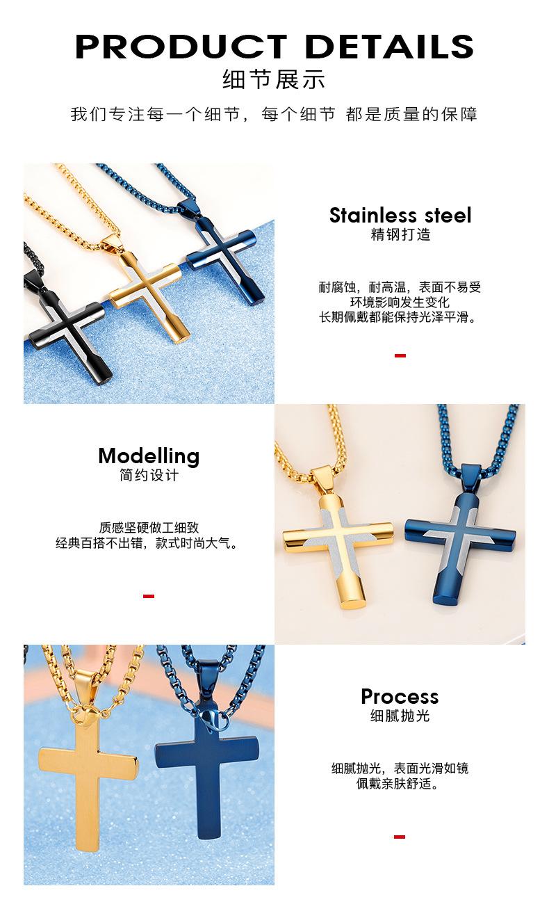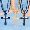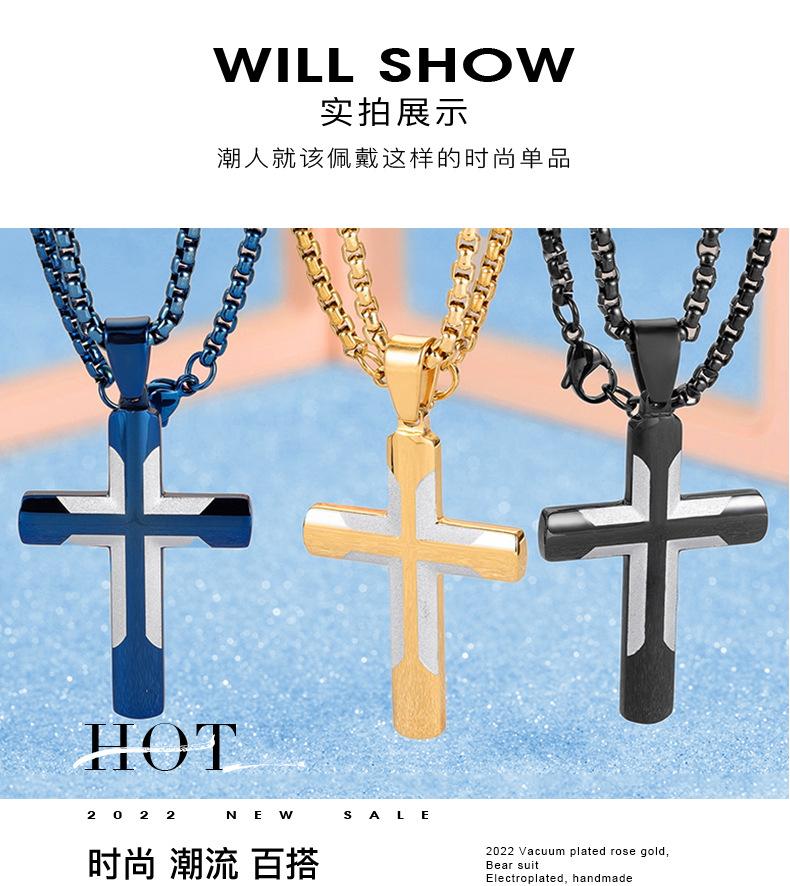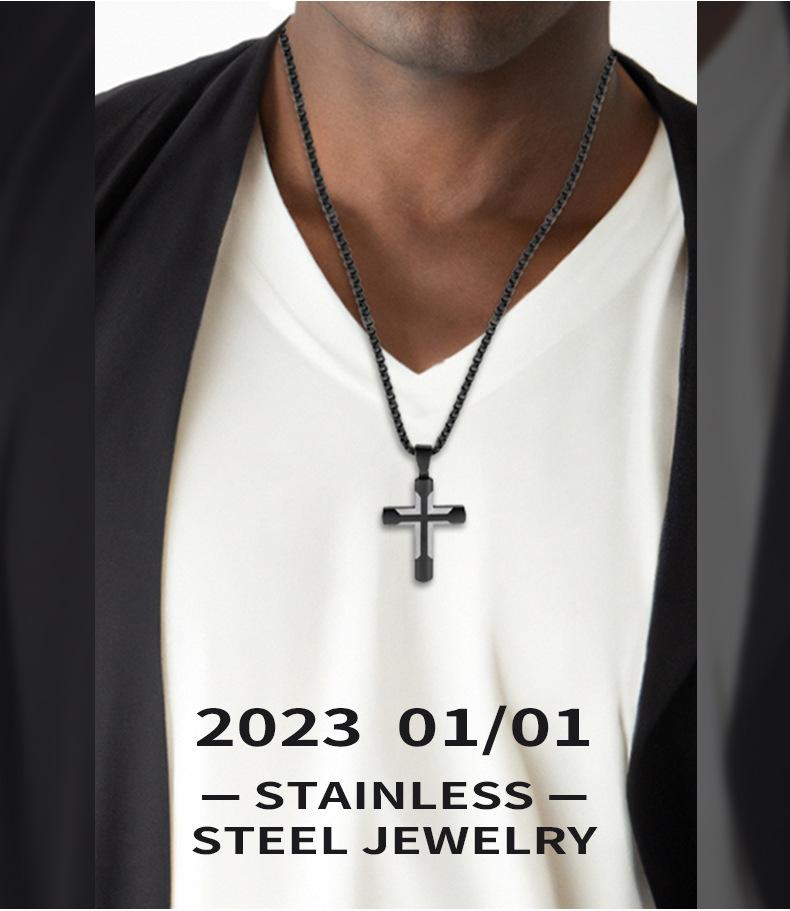 Collar de acero de titanio en capas al por mayor transfronterizo, colgante de acero inoxidable con cruz brillante de estilo hip hop para hombres europeos y americanos.