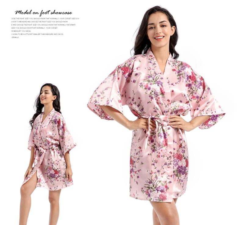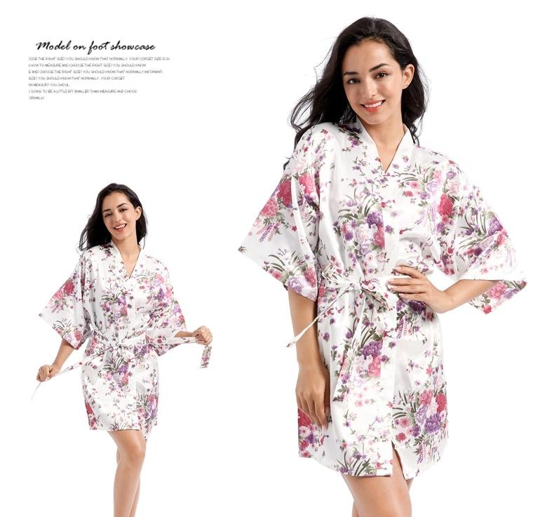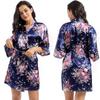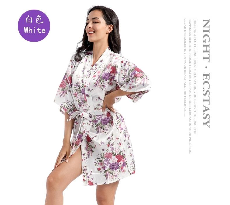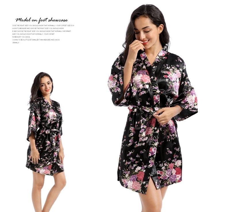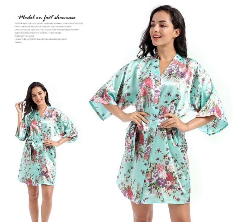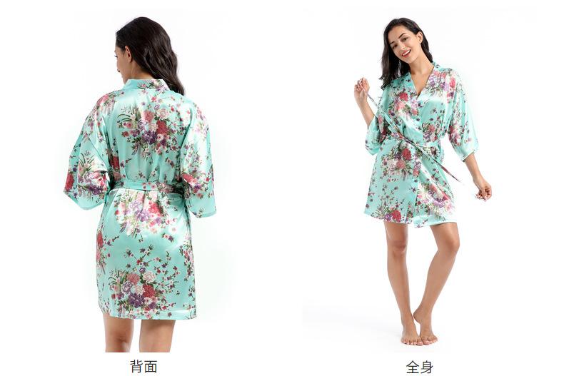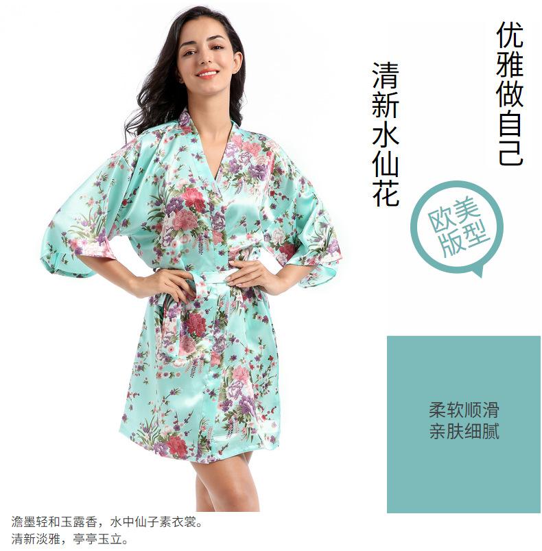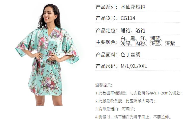 Camisón tipo cárdigan corto de verano para mujer, fino, de talla grande, holgado, de seda con estampado de narcisos, para la mañana