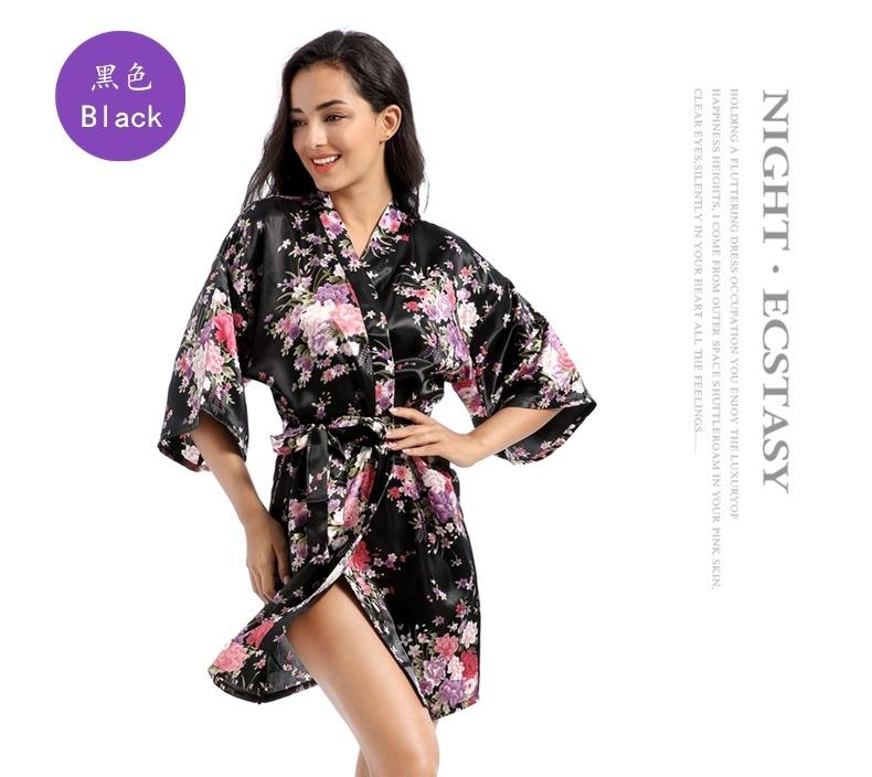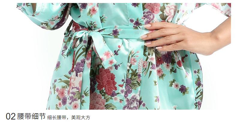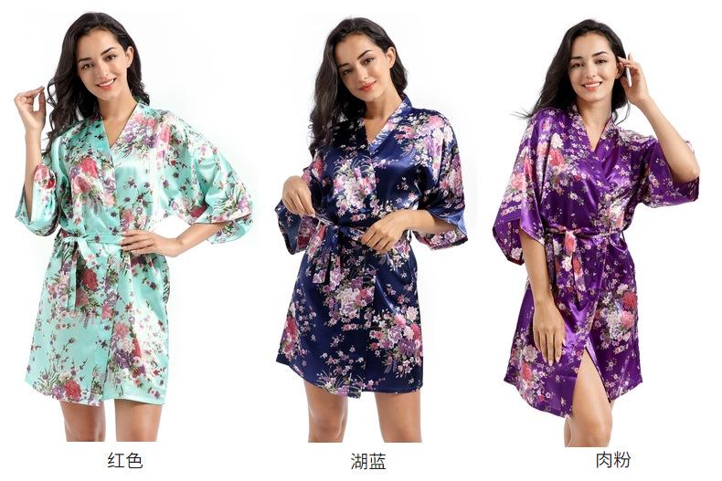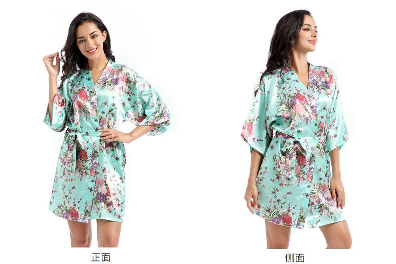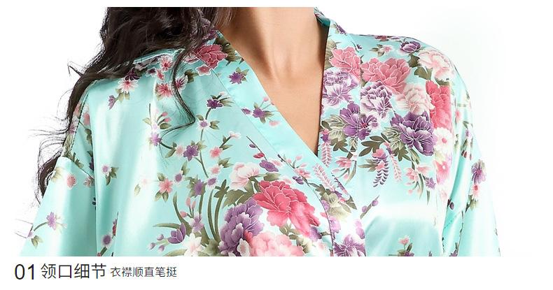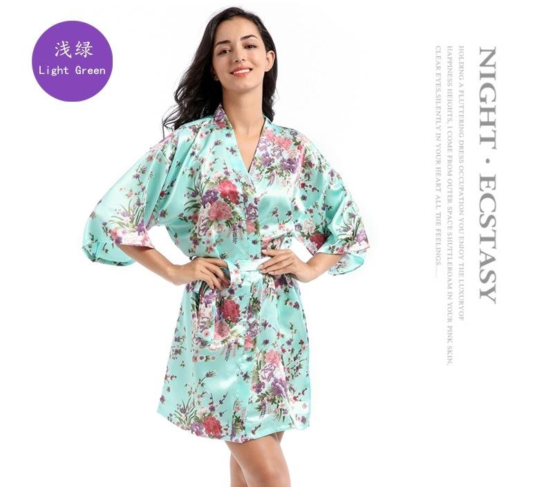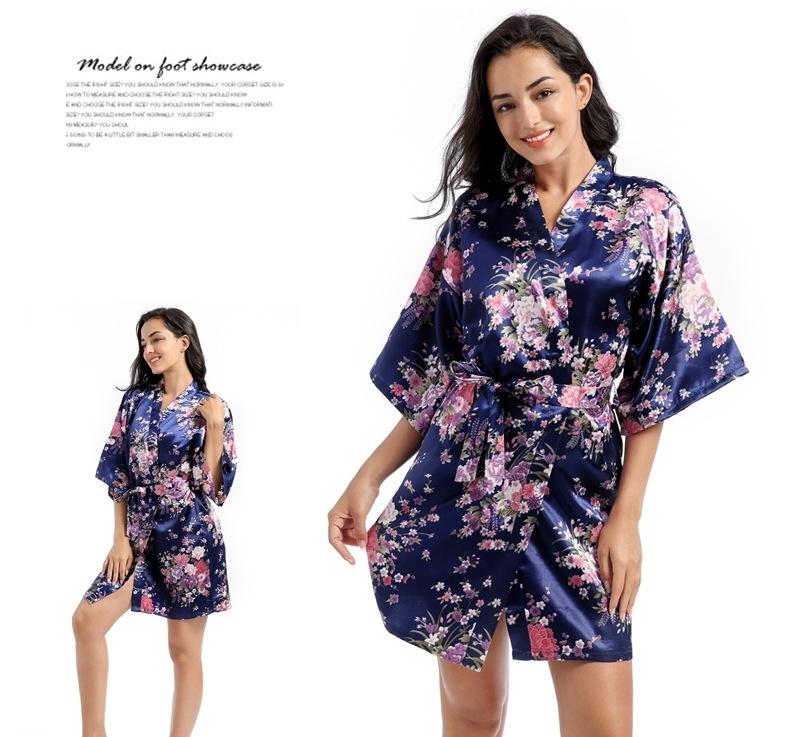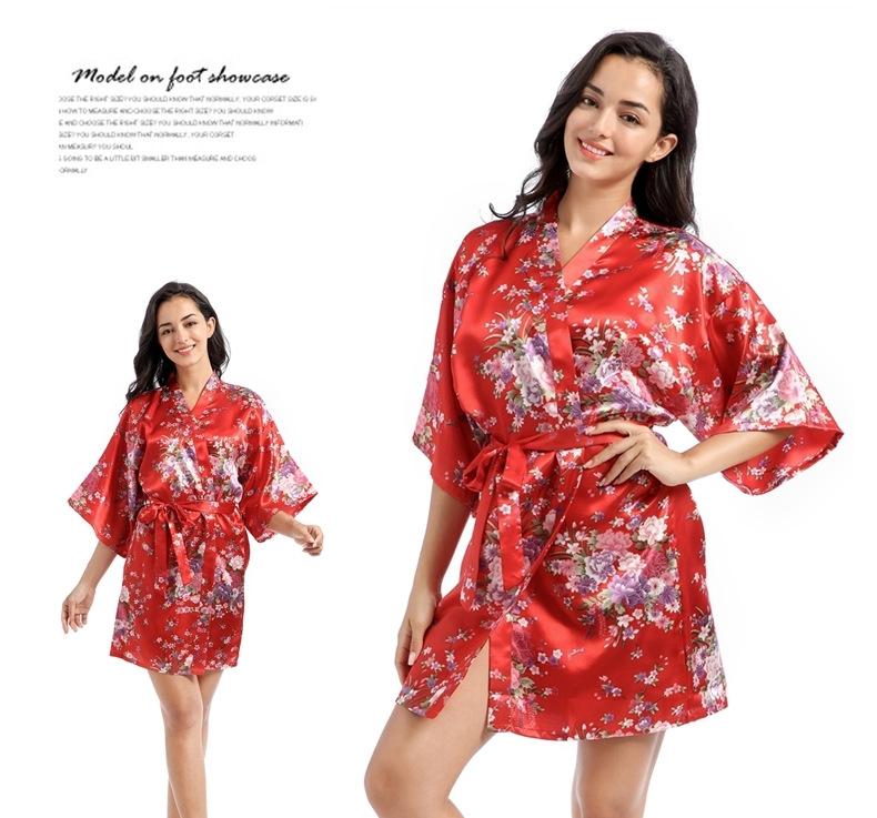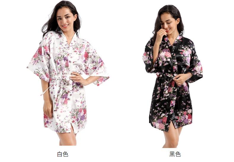Camisón tipo cárdigan corto de verano para mujer, fino, de talla grande, holgado, de seda con estampado de narcisos, para la mañana