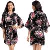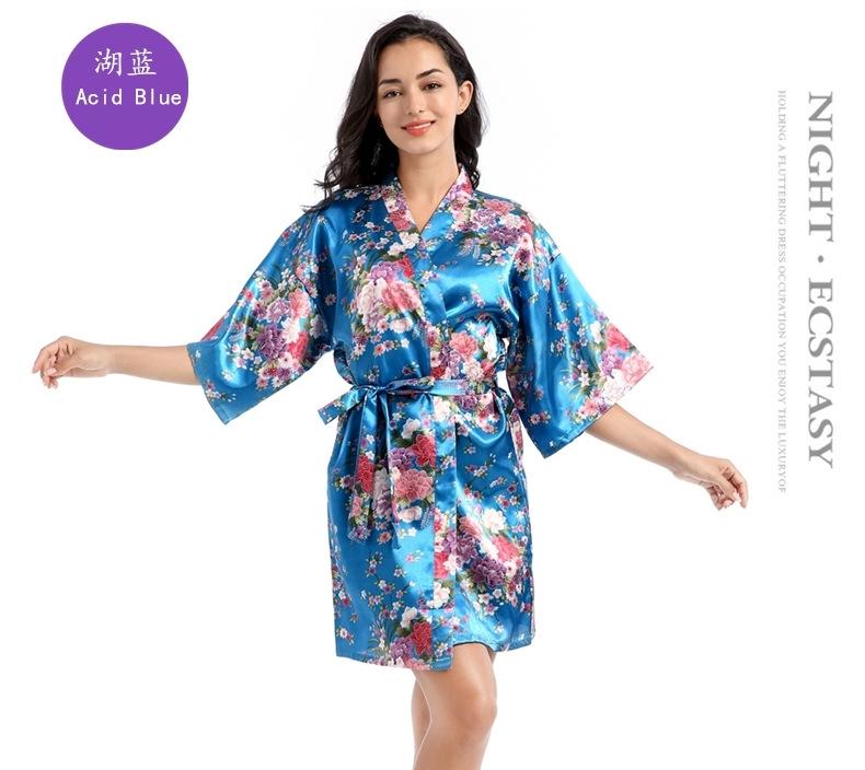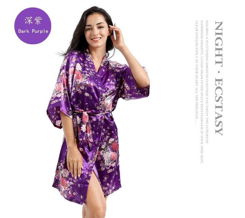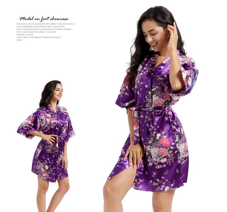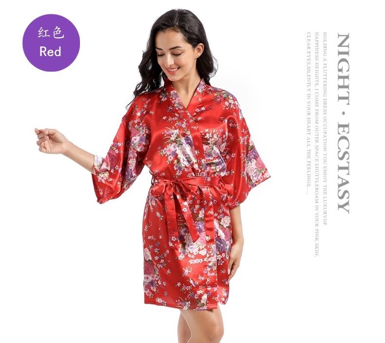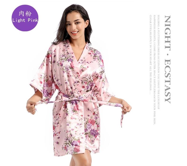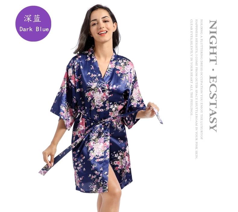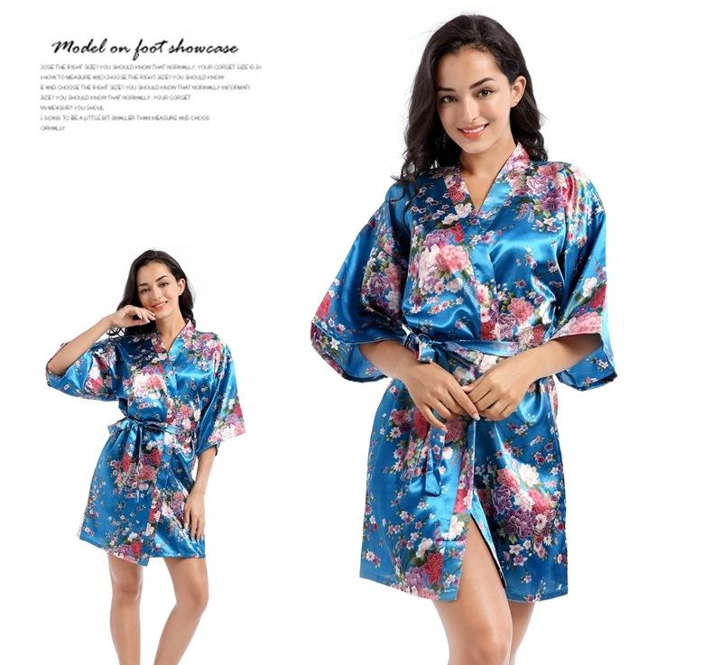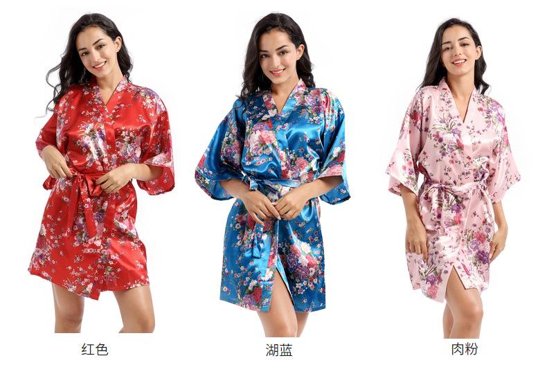 Camisón tipo cárdigan corto de verano para mujer, fino, de talla grande, holgado, de seda con estampado de narcisos, para la mañana