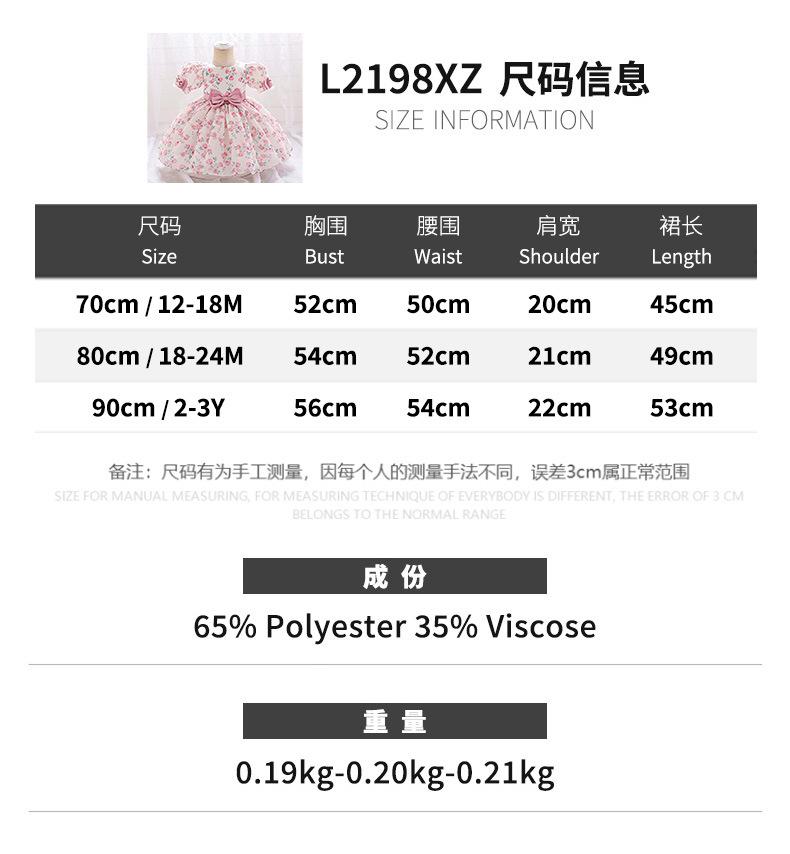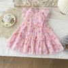 Vestido de Princesa con Flores Estampadas para Niñas, Vestido Pomposo con Lazo, Manga Corta, Vestido de Fiesta, Vestido para Niños