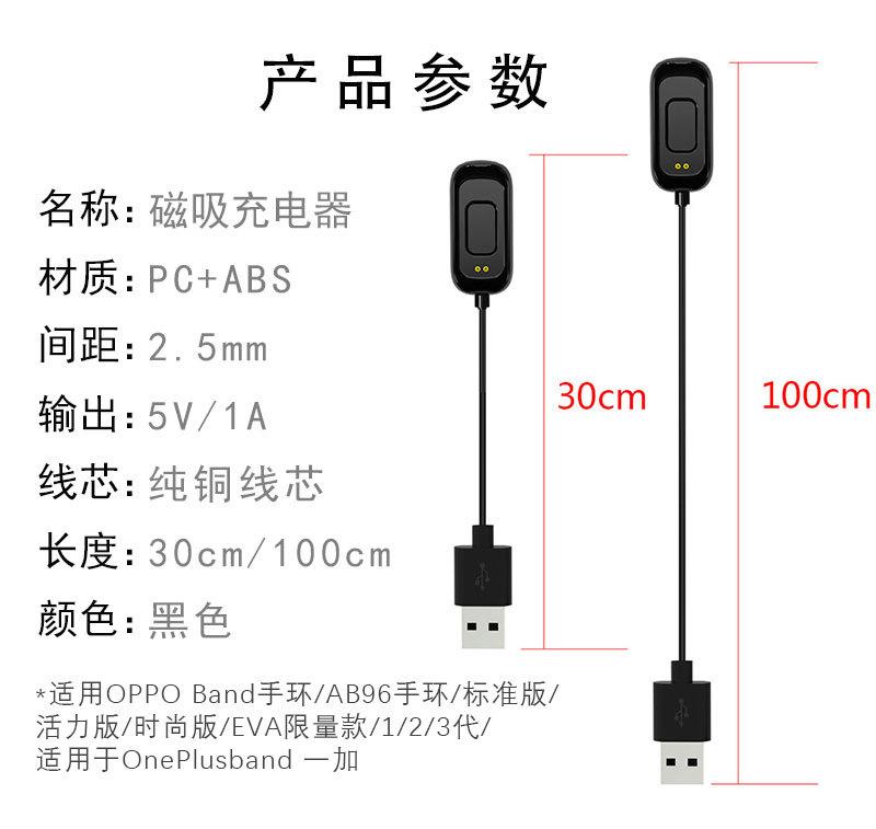 Compatible con pulsera inteligente Oppo Band/Ob19B, cargador Ab96, cable de carga desmontable, cable de datos USB.