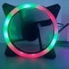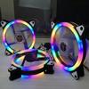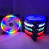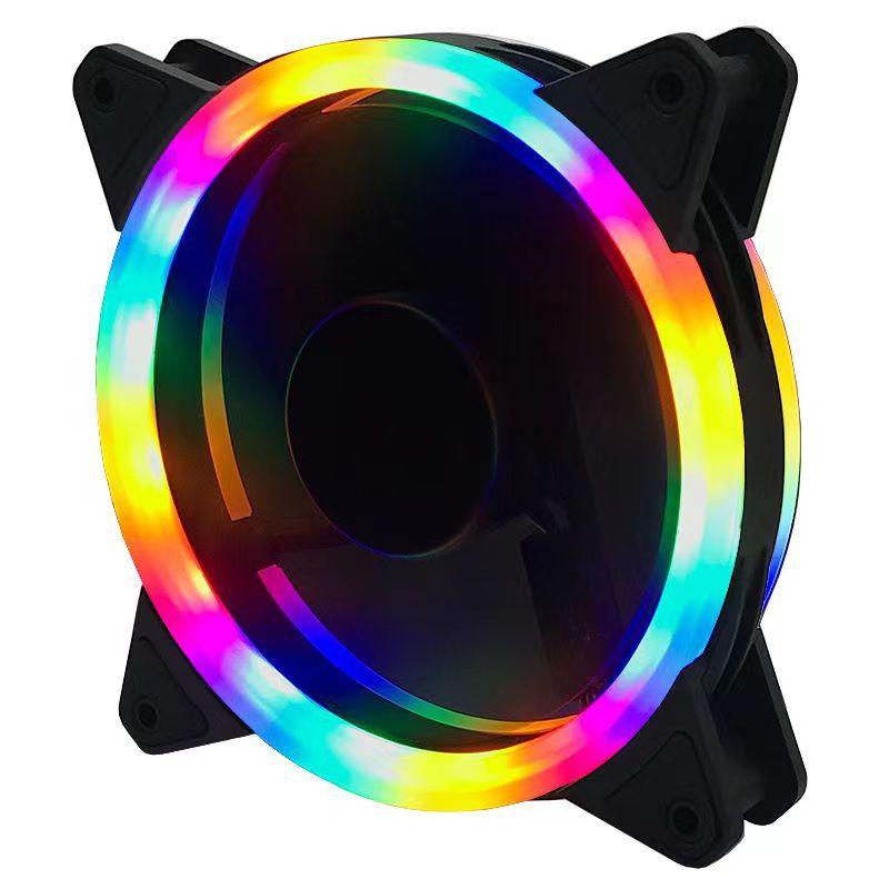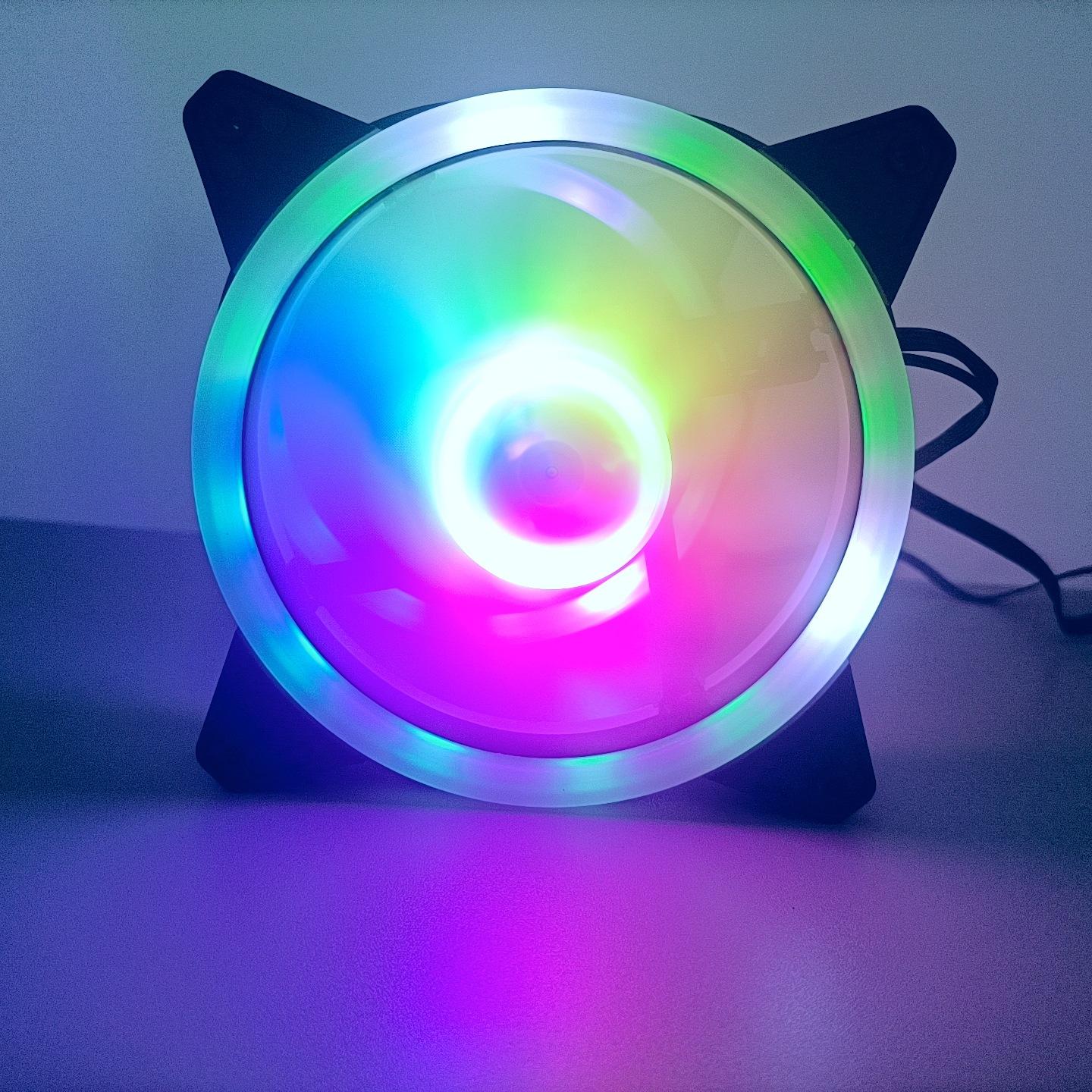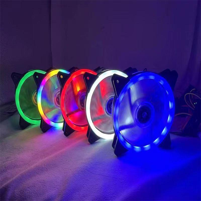 Ventilador LED de 12 cm con doble apertura y alto brillo para caja, con 8 almohadillas amortiguadoras y tornillos de montaje. Este ventilador utiliza 12 bombillas LED grandes de alto brillo y larga duración. Existen numerosas imitaciones en el mercado de bombillas pequeñas de brillo medio o bajo, de corta duración, mucho más baratas y de peor calidad. Tenga cuidado al distinguirlas.