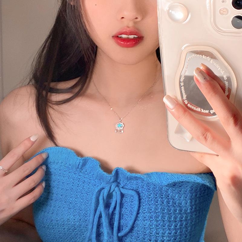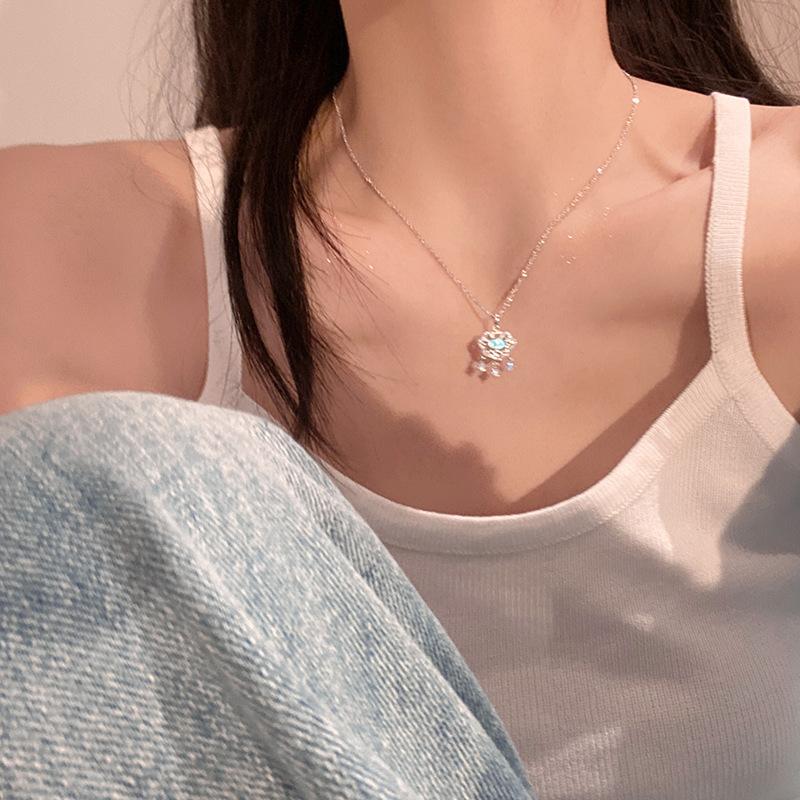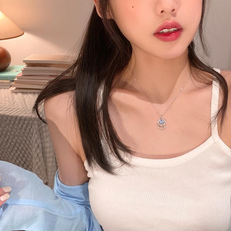 [El dueño de la tienda recomienda encarecidamente] Collar Ping an Lock para mujer, verano, lujo ligero, diseño de nicho, piedra lunar, collar de cadena para clavícula