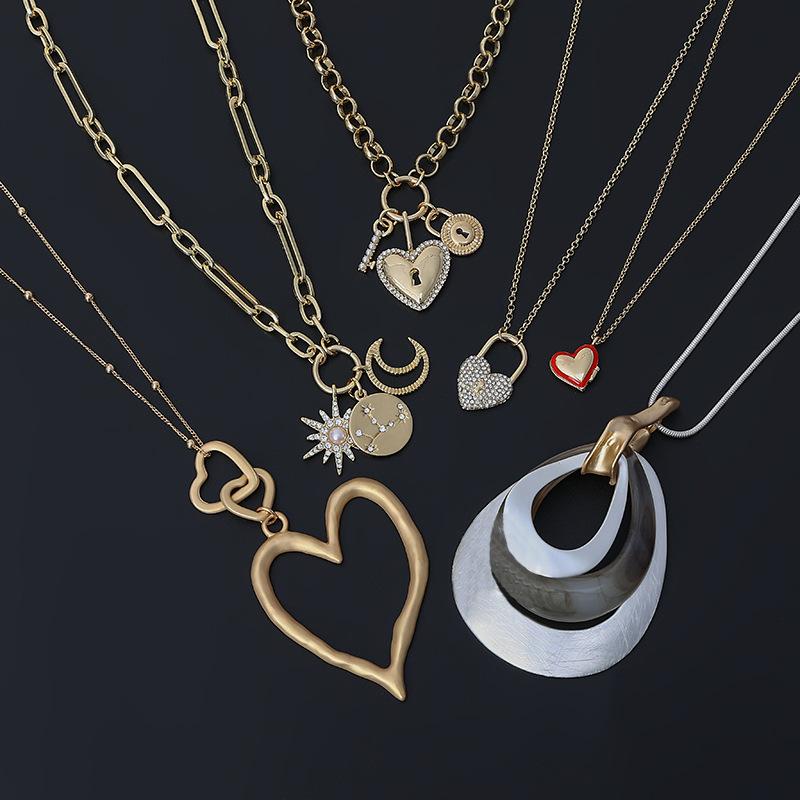 Collar con colgante largo en forma de corazón de amor, estilo europeo y americano, muy vendido en Amazon, cadena de suéter de metal para mujer, venta al por mayor
