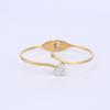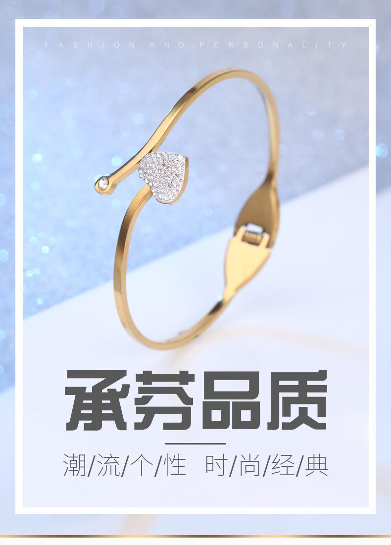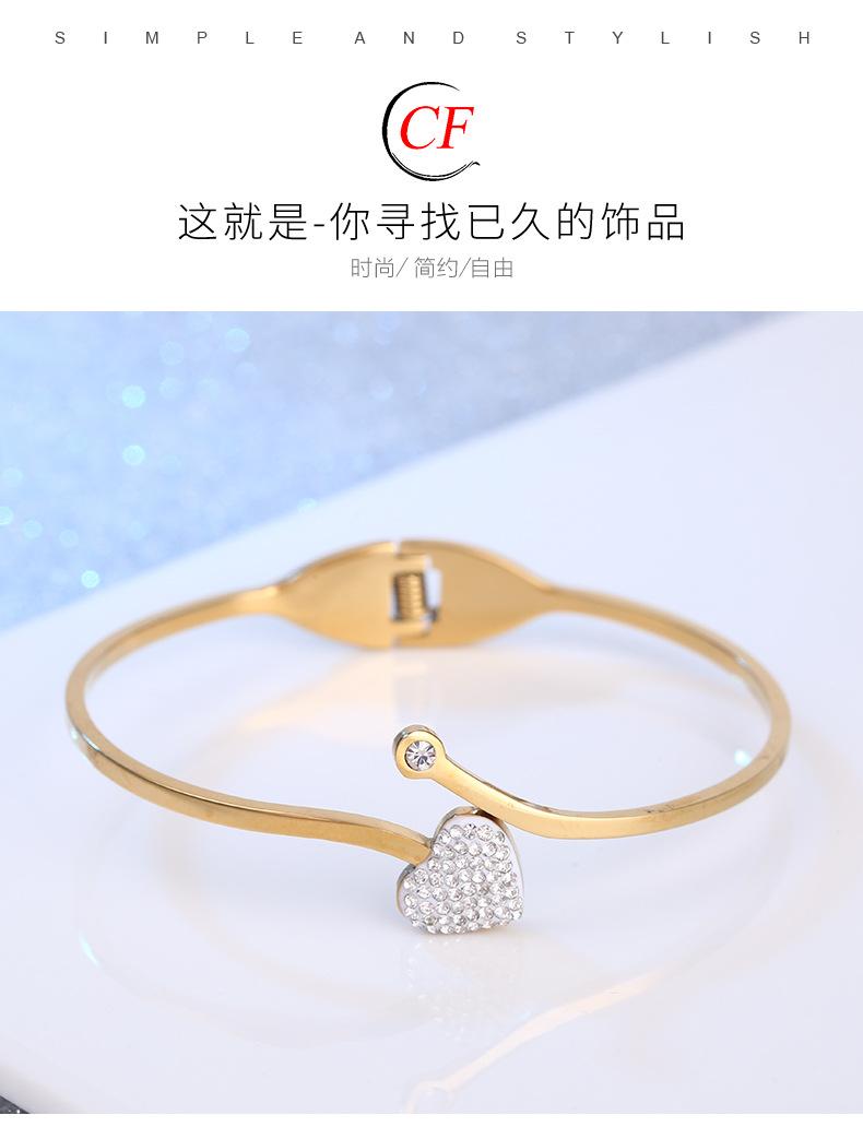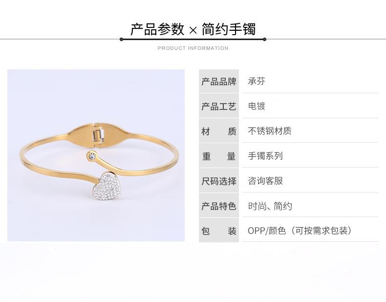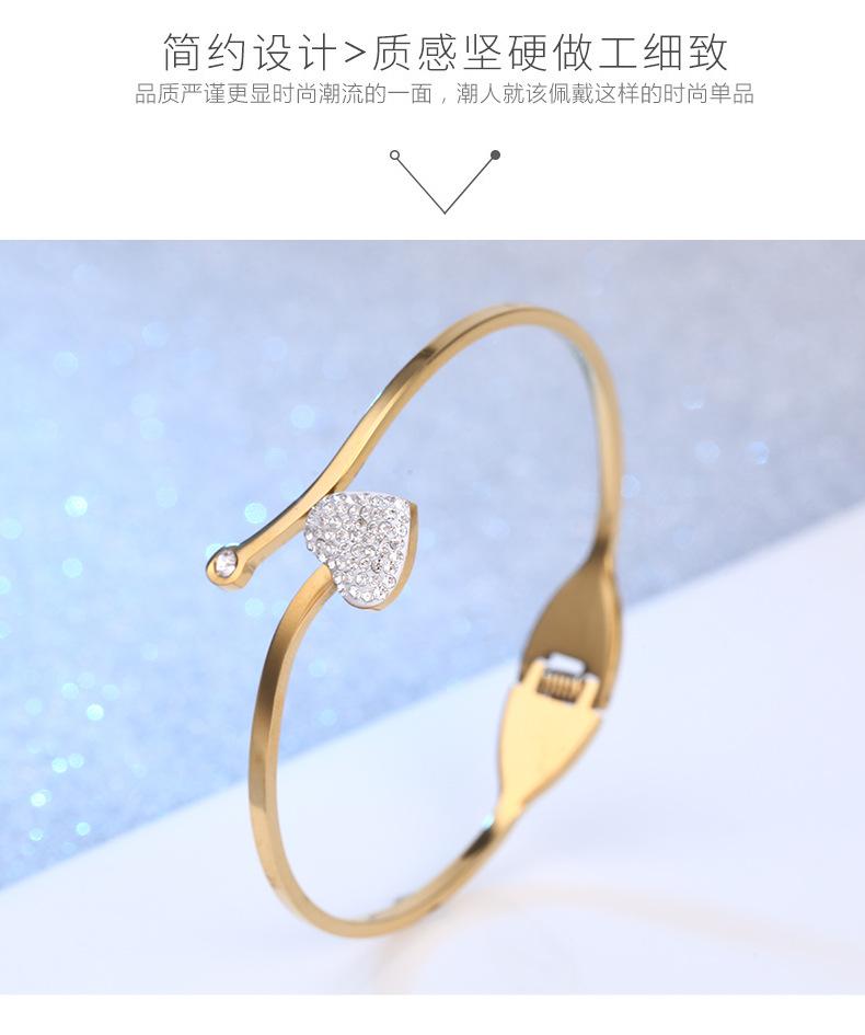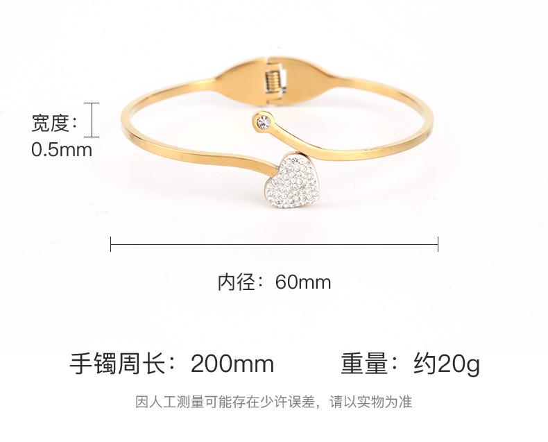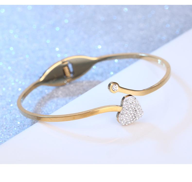 Pulsera coreana de moda en forma de corazón de acero de titanio con diamantes completos, acero inoxidable amor chapado en oro, pulsera abierta, pulsera clásica