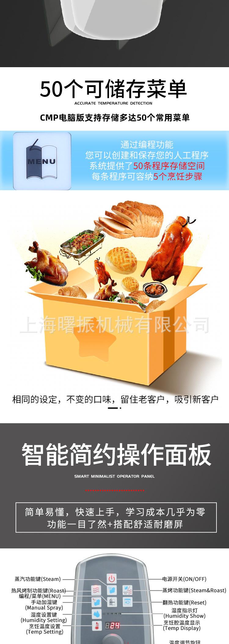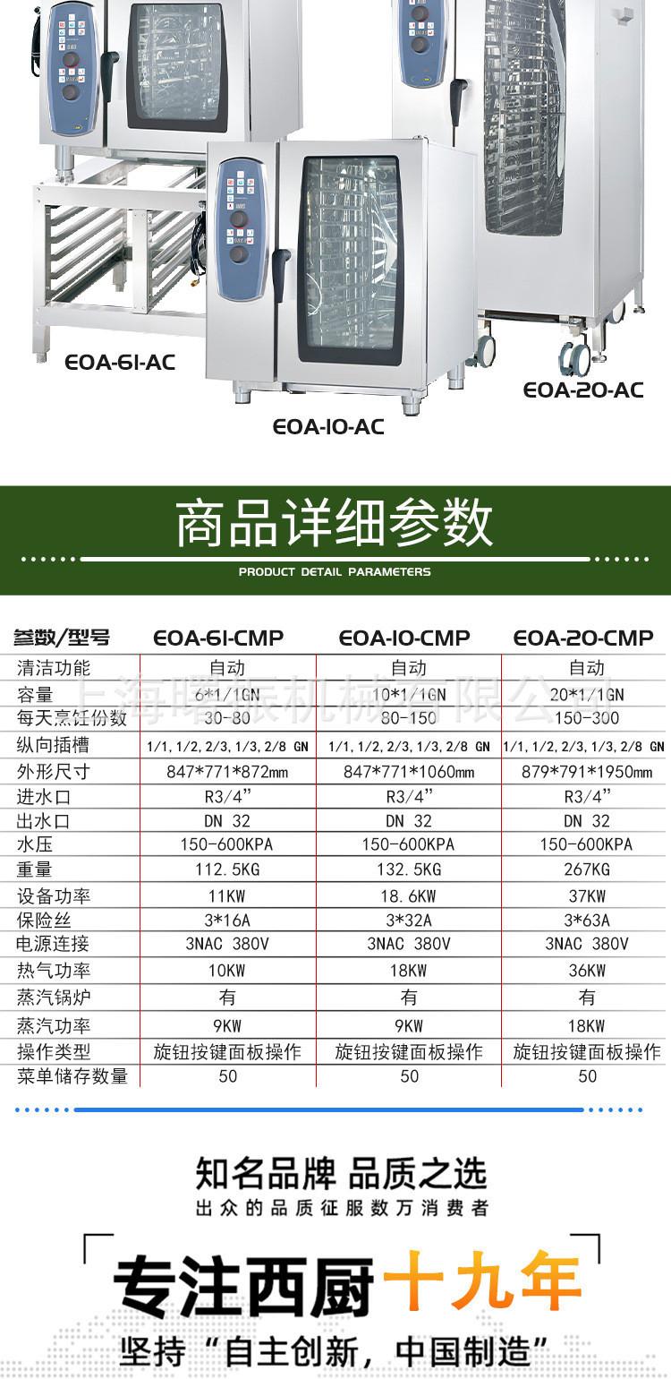 Horno de vapor multifunción con pantalla táctil y limpieza automática Shanghai EOA-10-AC, versión para computadora, de 10 y 20 capas.