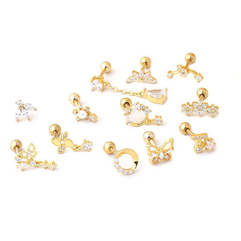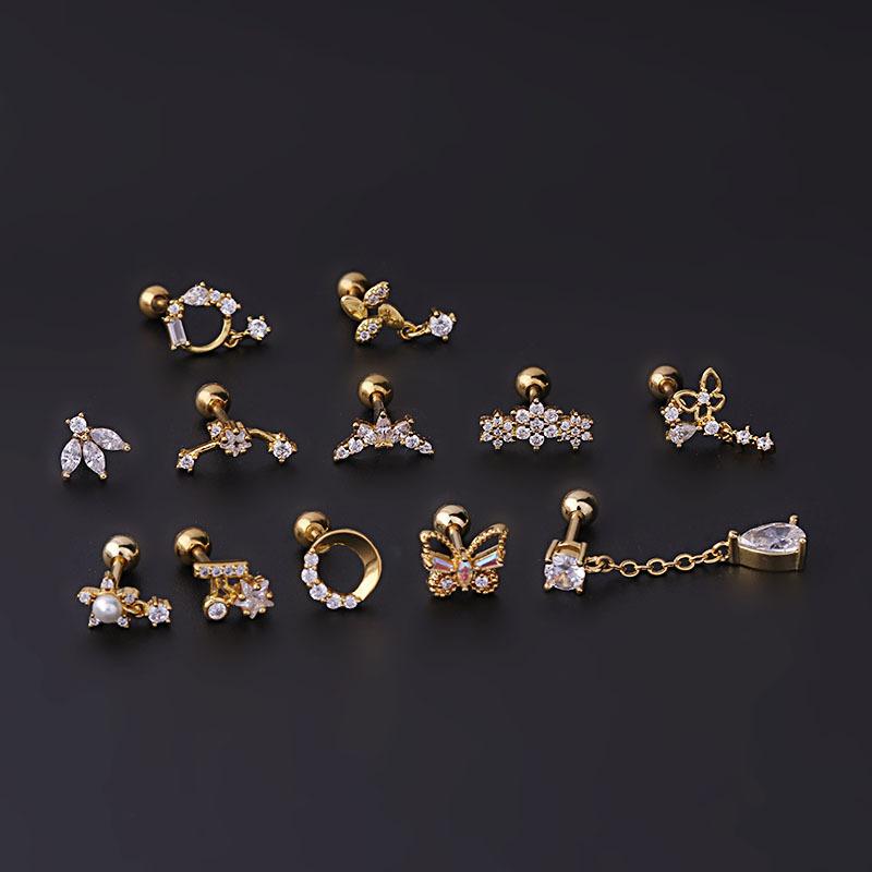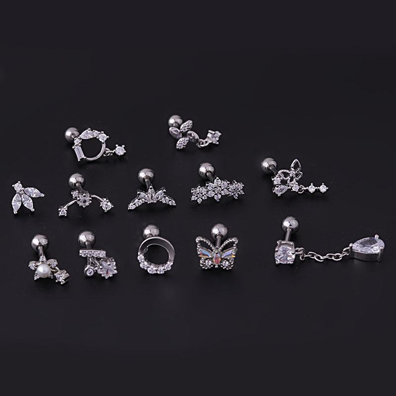 nombre del producto | Aretes de bola de tornillo de acero inoxidable de varilla gruesa de 16G flor de circón mariposa tachuelas para hueso de la oreja comercio exterior europeo y americano aretes piercing |