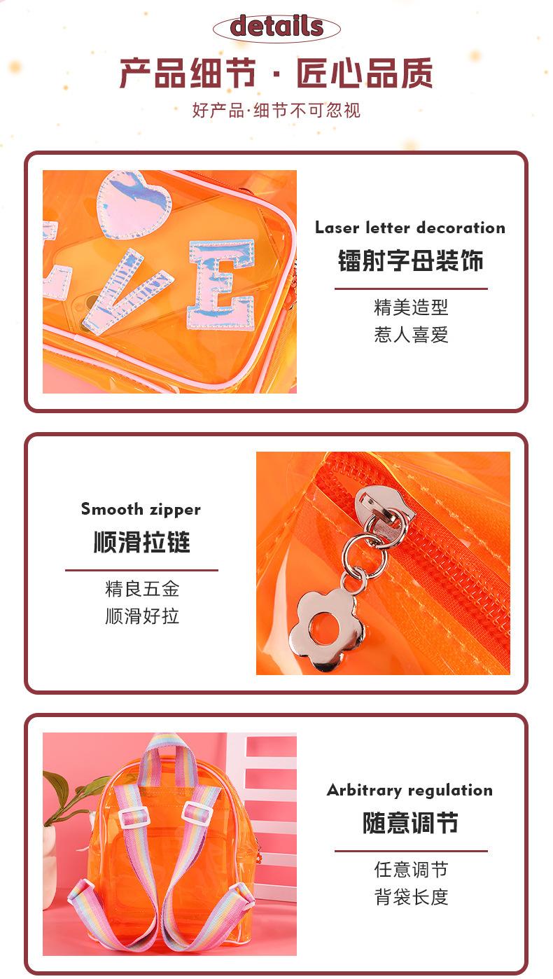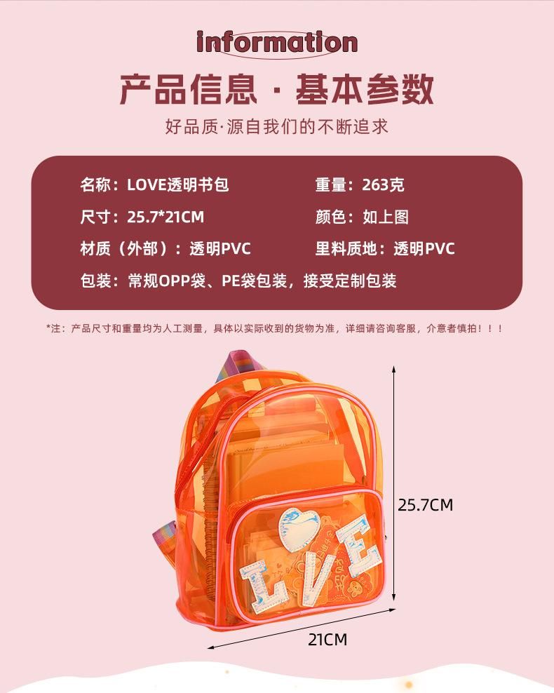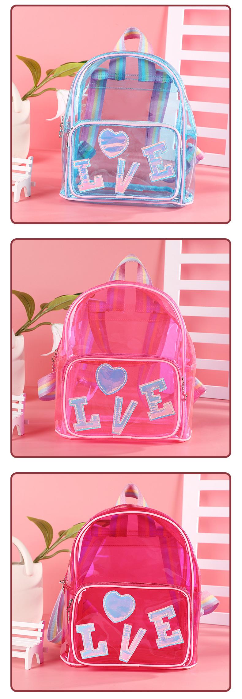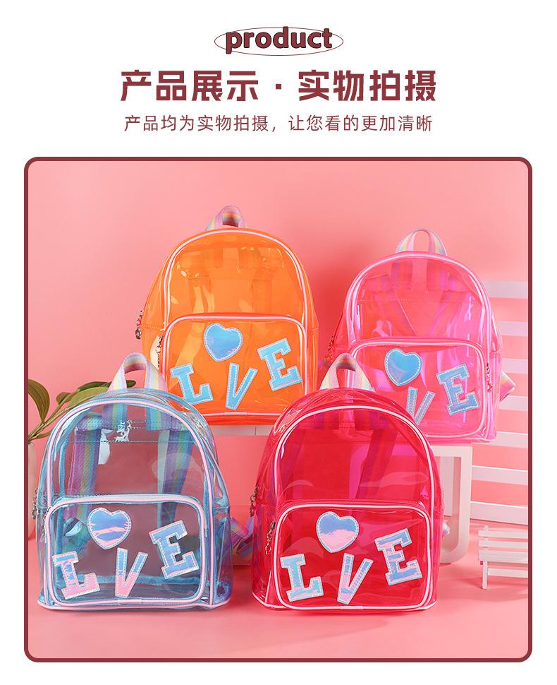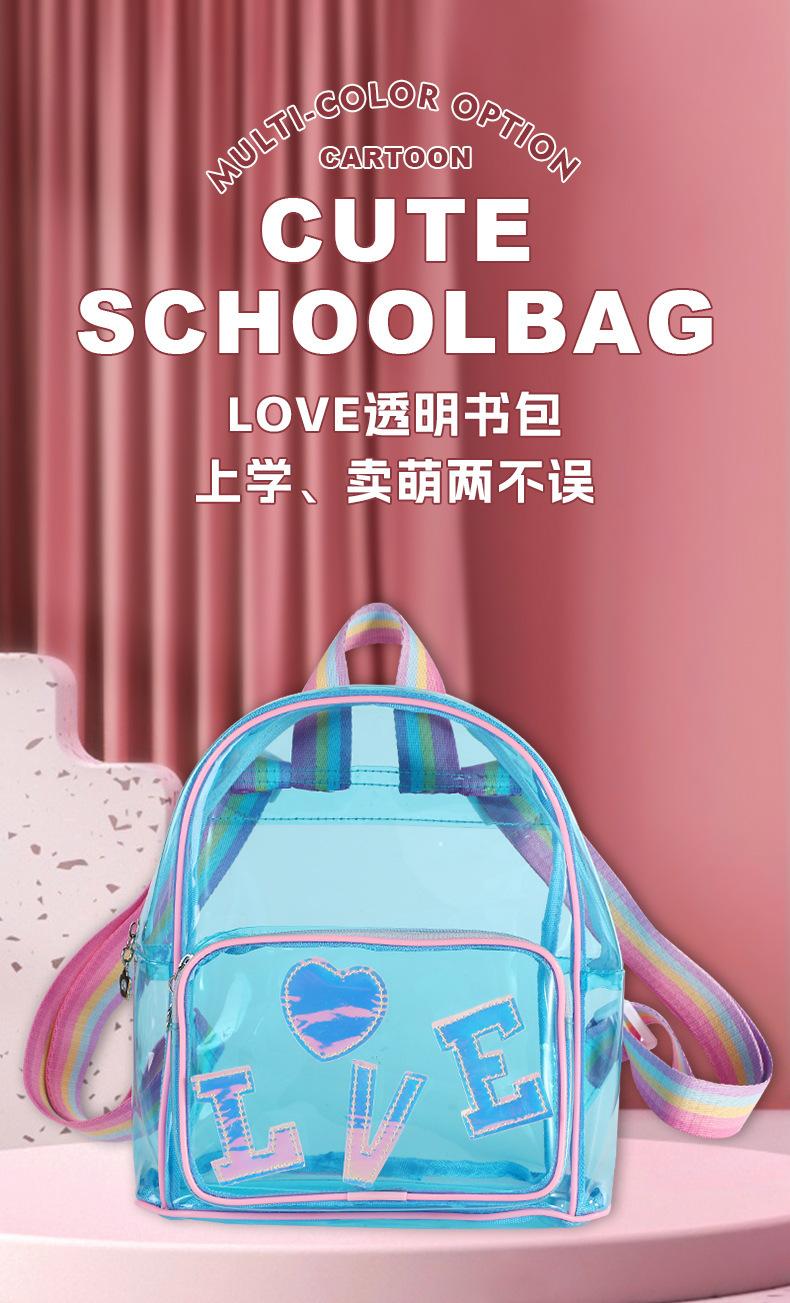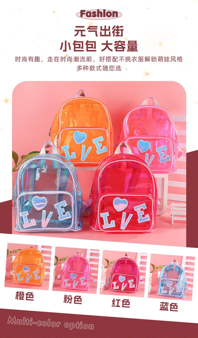 Orange LOVE Transparent Satchel, Pink LOVE Transparent Schoolbag, Red LOVE transparent schoolbag, Blue LOVE Transparent Schoolbag