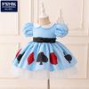 Vestido nuevo de niña de las flores europeo y americano, vestido de princesa de manga abullonada de tela forjada, vestido para niños