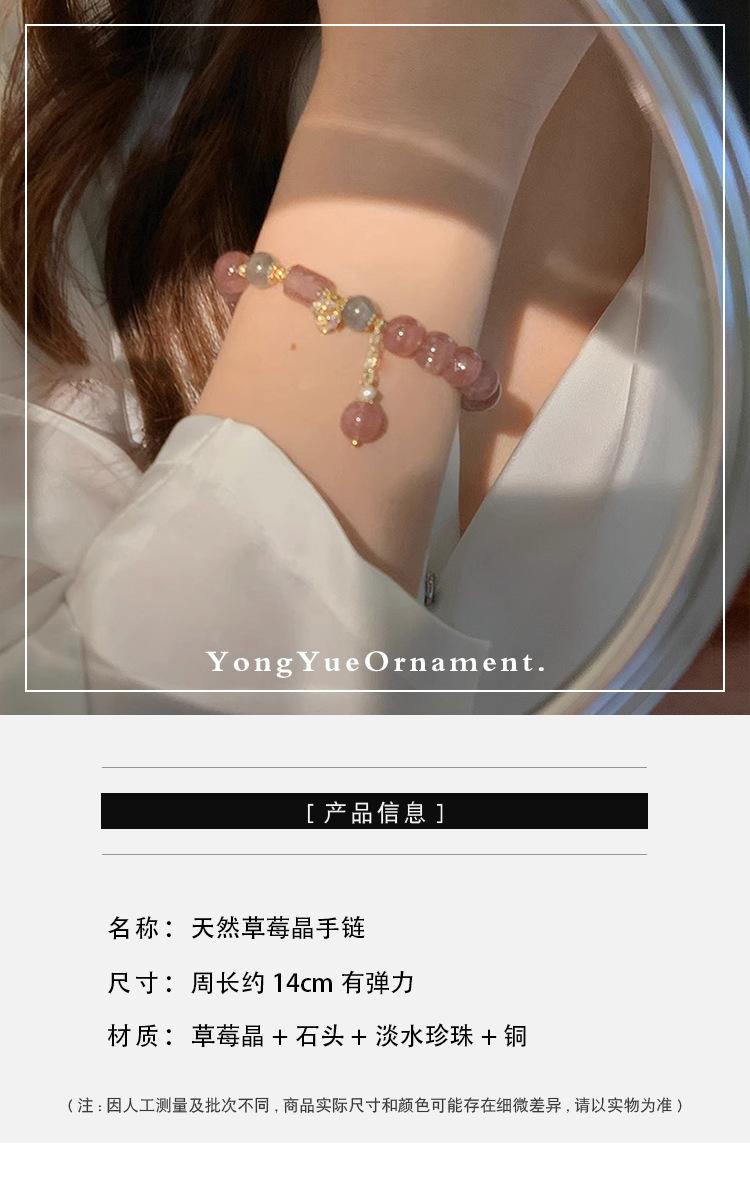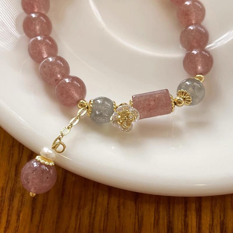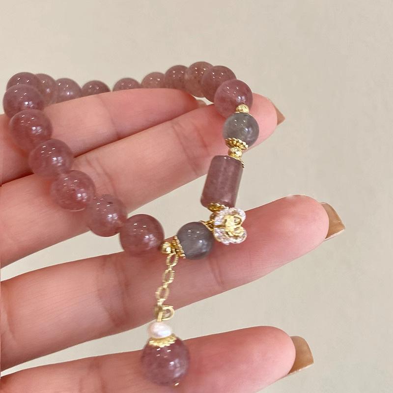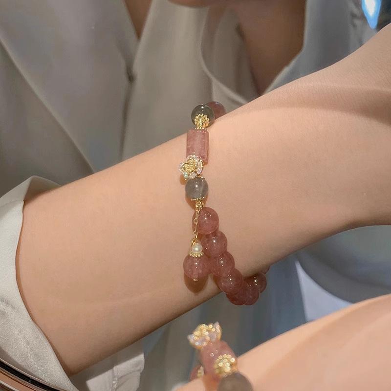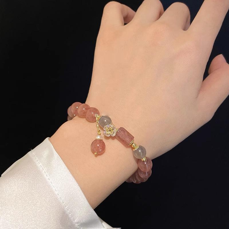 Reclutando Cristal de Polvo de Cristal de Fresa Flor de Durazno Pulsera de Cristal para Mujer Nicho Lujo Ligero Cuentas Pulsera de Cuentas