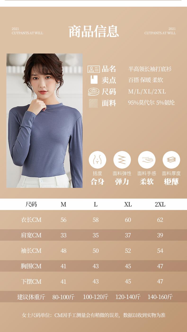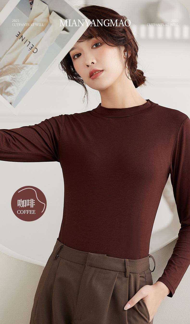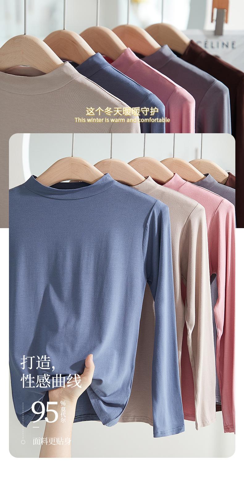 Ropa Modal de Otoño para Mujer, Delgada, de Cuello Alto Medio, Manga Larga, Ajustada, Ropa Cálida de Otoño e Invierno, Camiseta Básica Ajustada