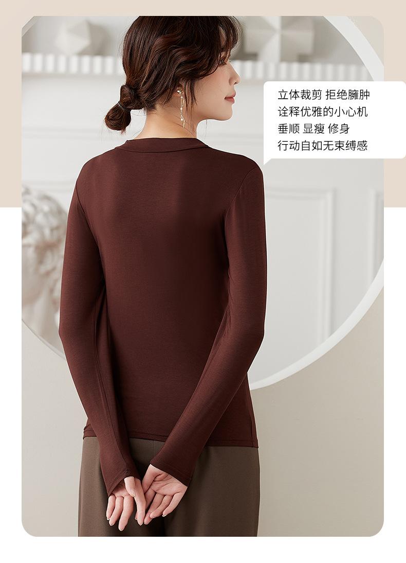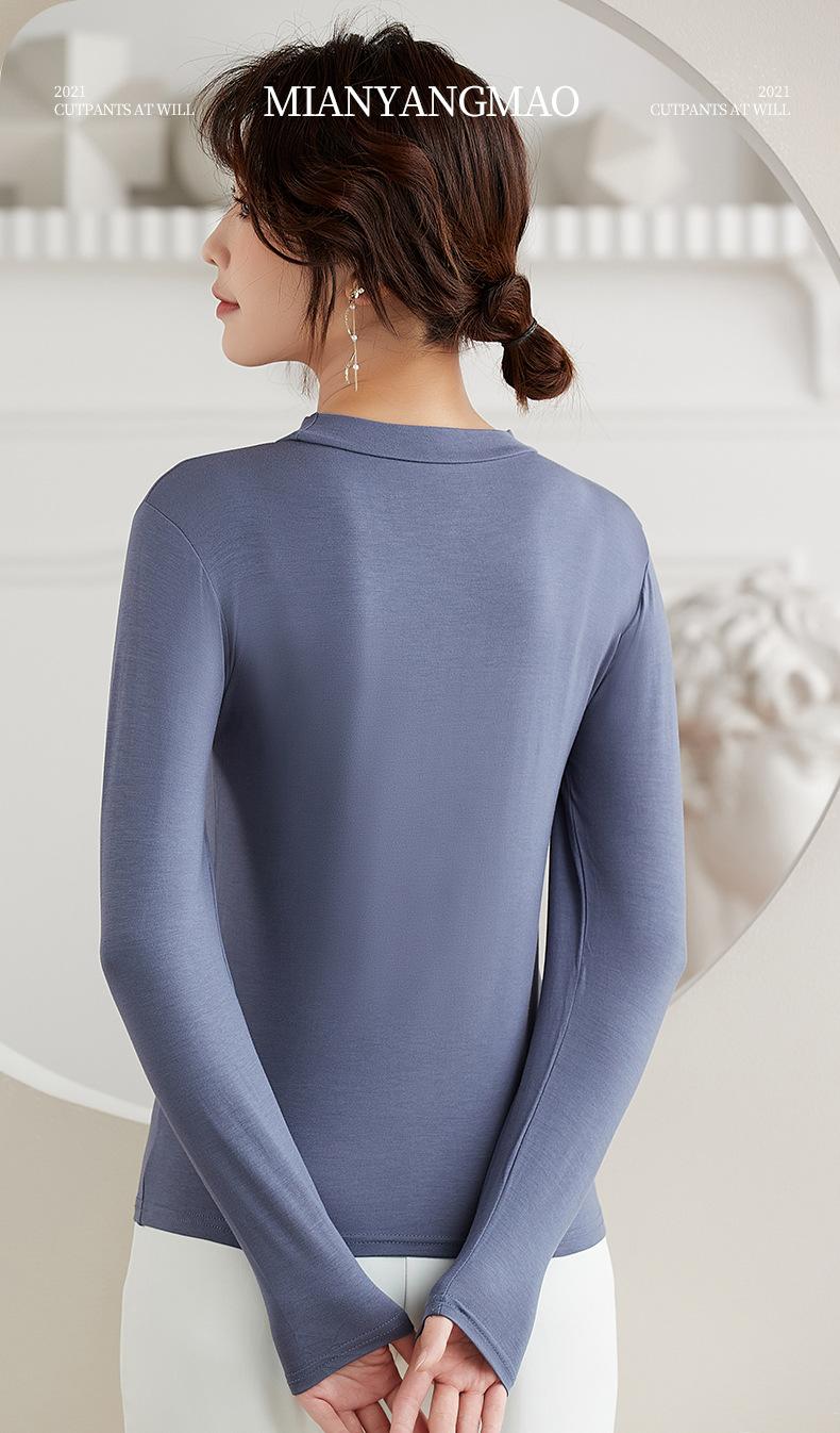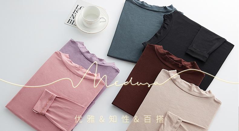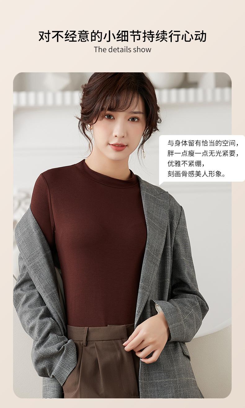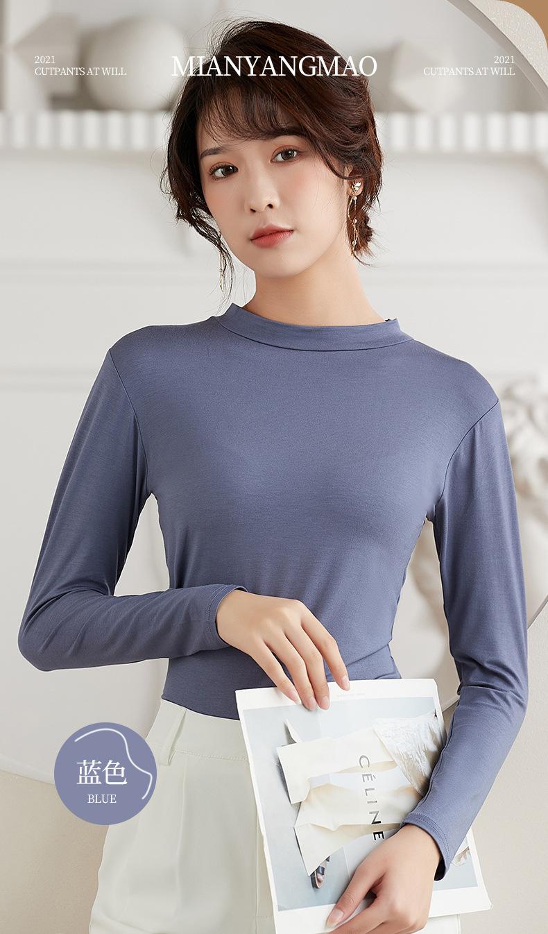Ropa Modal de Otoño para Mujer, Delgada, de Cuello Alto Medio, Manga Larga, Ajustada, Ropa Cálida de Otoño e Invierno, Camiseta Básica Ajustada