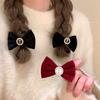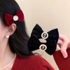 Estilo Chanel Retro Francés Terciopelo Negro Lazo Rosa Horquilla para el Cabello Sentido Avanzado Flequillo Clip para Cabello Roto Sombrero Invierno