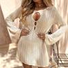 Falda de playa ajustada y sexy de comercio exterior europeo y americano para mujer, vestido de punto de manga larga con huecos para discoteca transfronteriza