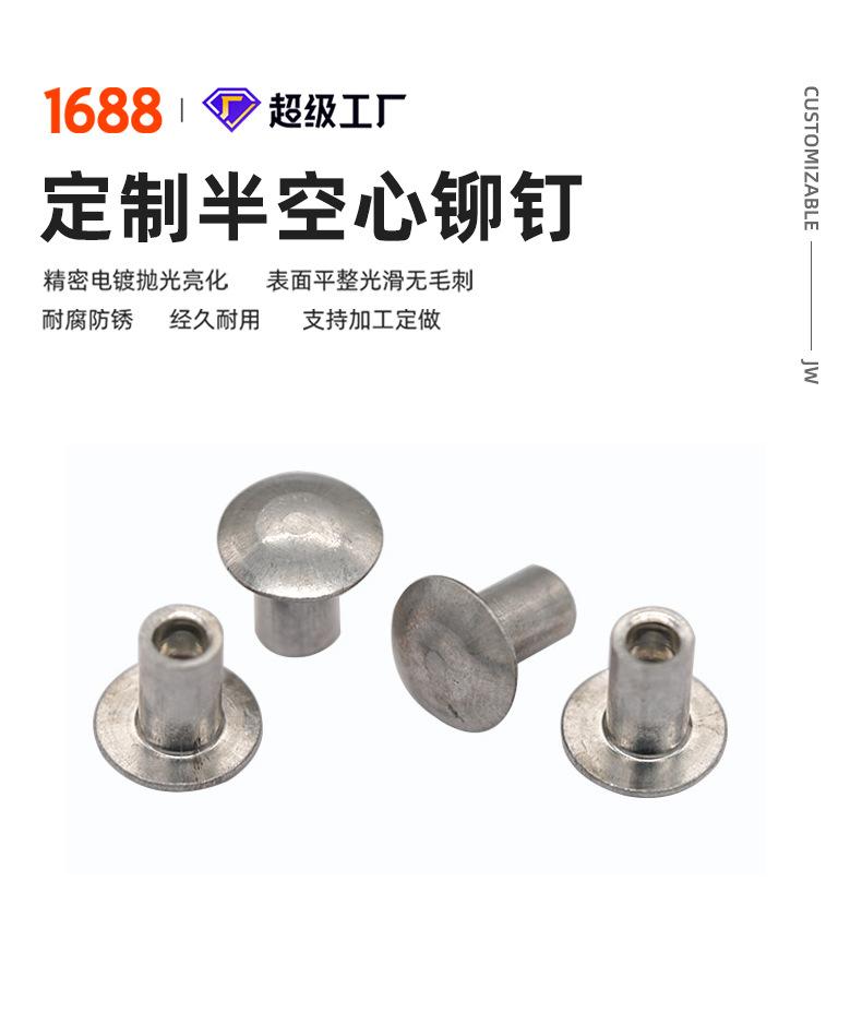 Procesamiento y Personalización de Remaches Semihuecos de Cabeza Redonda Plana de Acero Inoxidable 304 para Cascos, Muebles, Cobre, Hierro, Aluminio, Clavos Huecos y Remaches