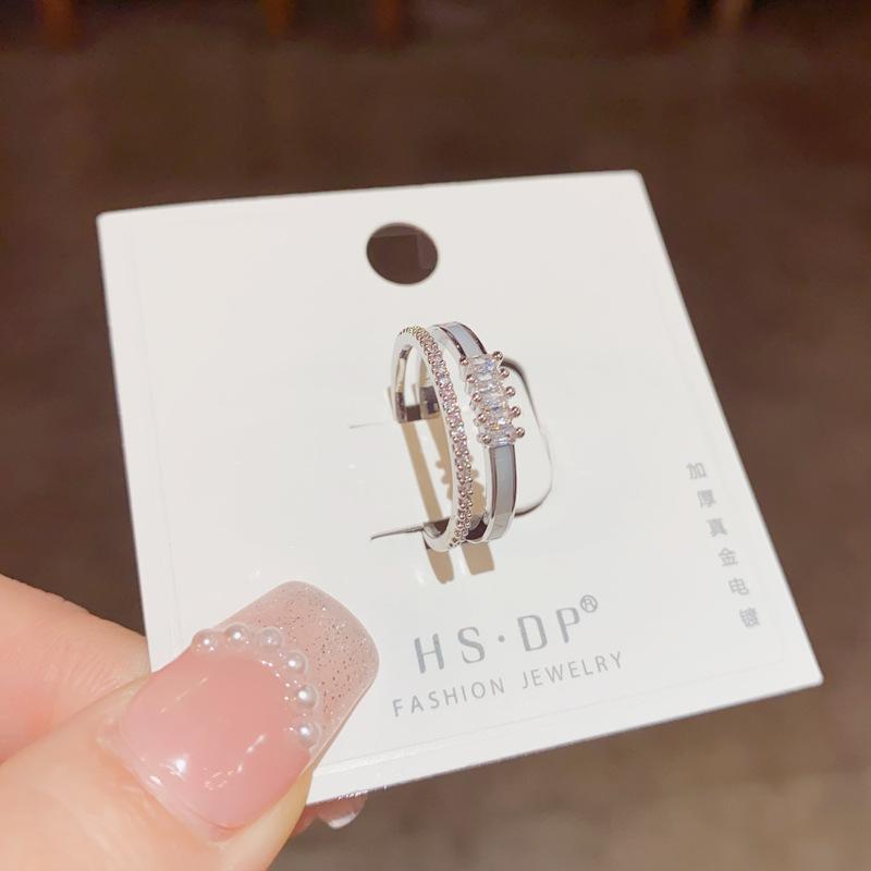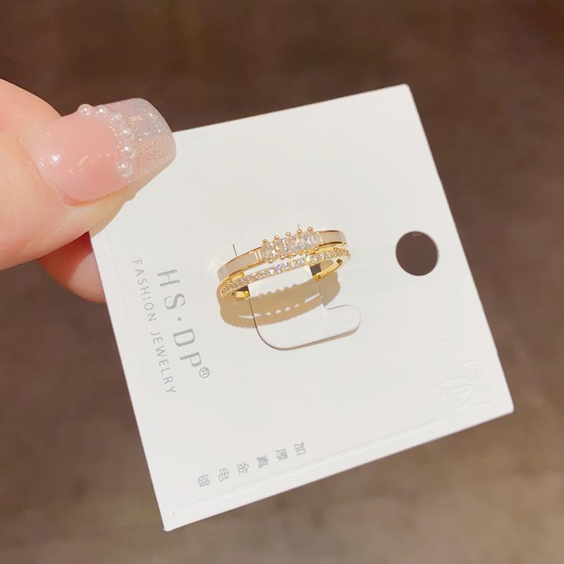 Gold-zircon shell double opening ring (thick real gold color), silver-zircon shell double opening ring (thick real gold color)