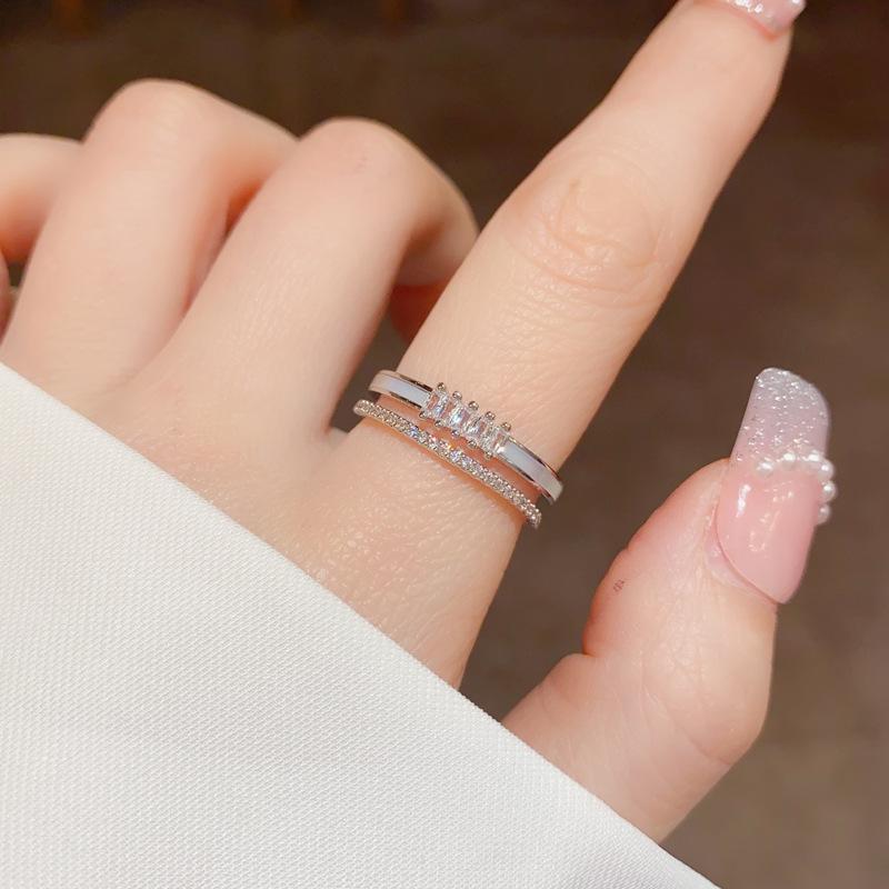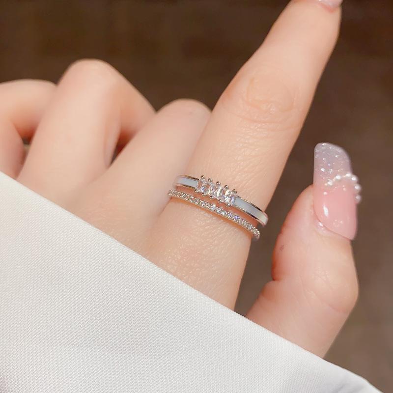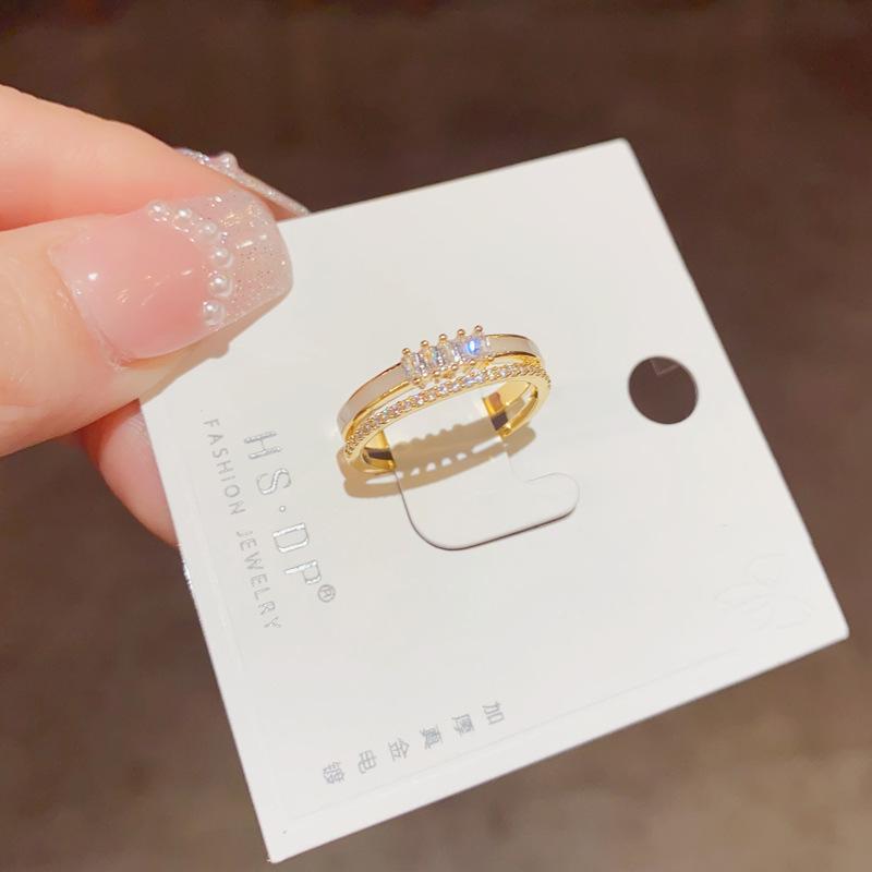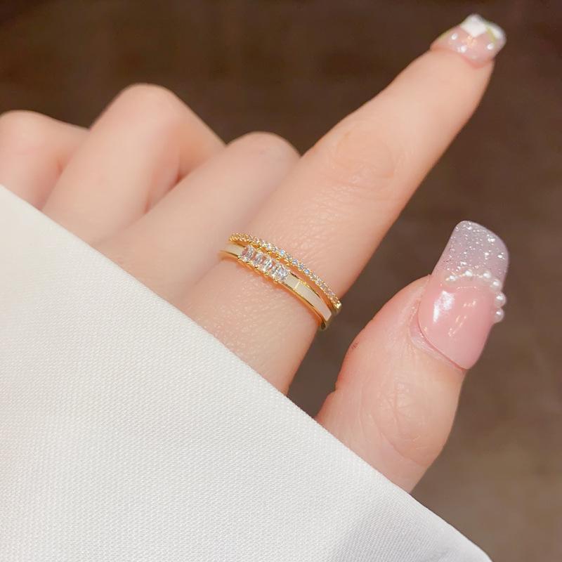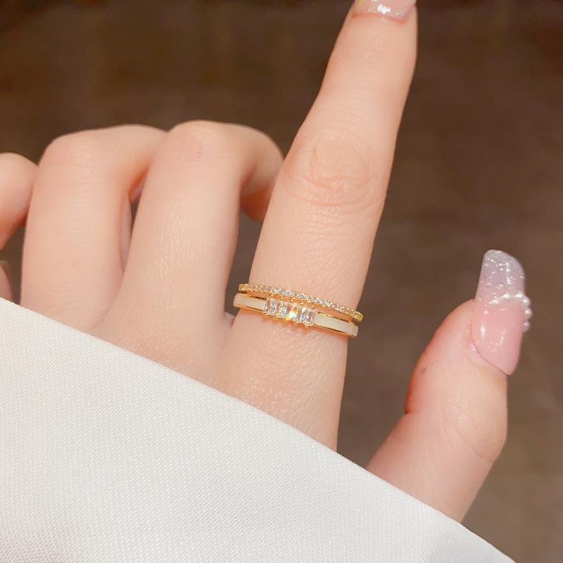 Anillo ajustable de doble capa con apertura de concha de circonita microincrustada para mujer, diseño de nicho, lujo ligero de alta gama, anillo para el dedo índice
