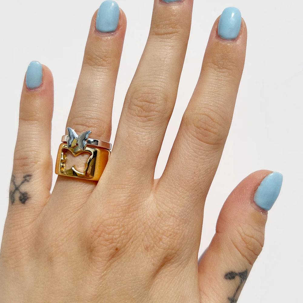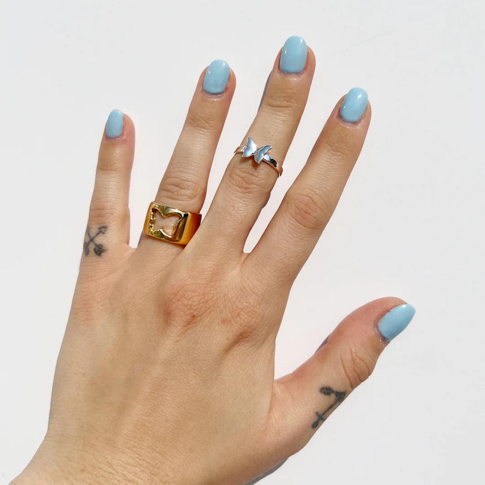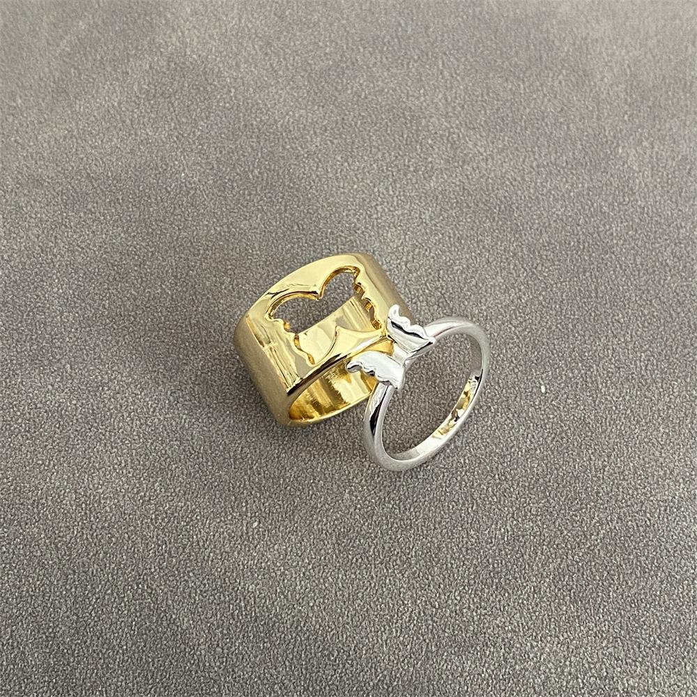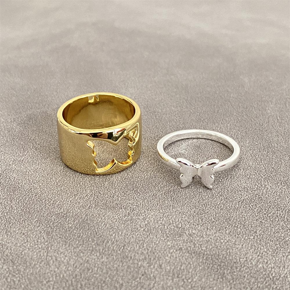 Anillo de Pareja Punk Vintage Anillo de Mariposa Hueco Combinación Estilo ins Simple Frío Anillo de Dedo Geométrico Juego de 2 piezas