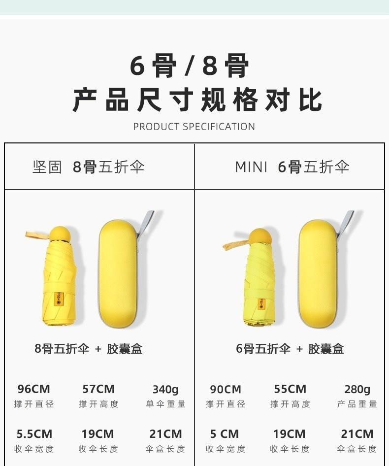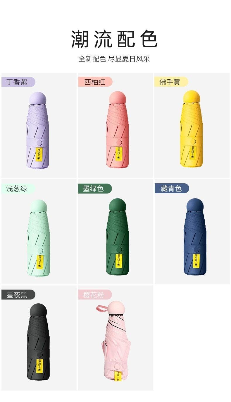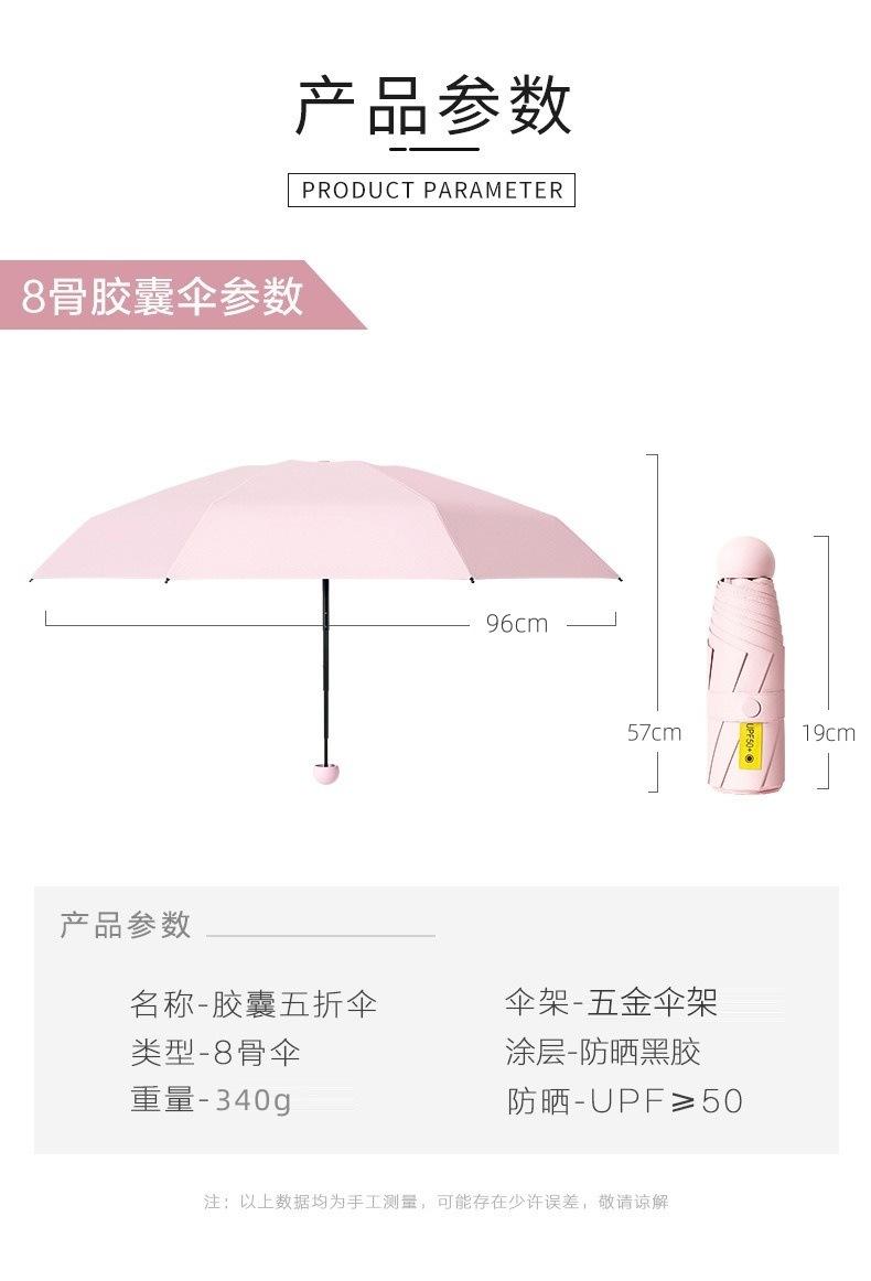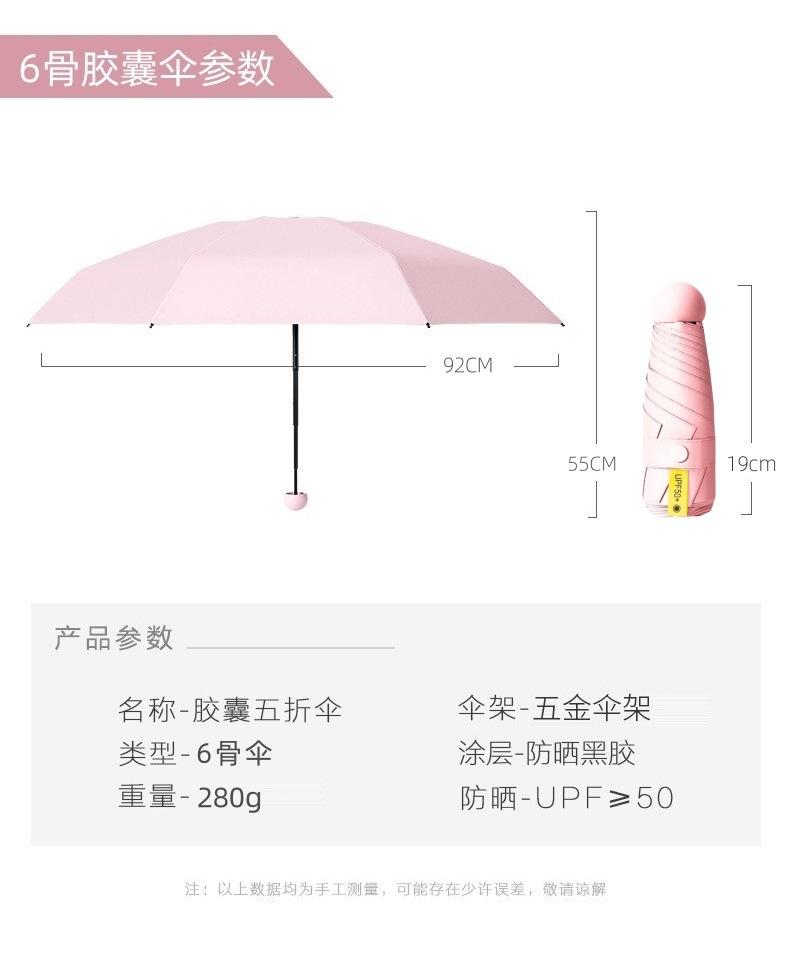 Mini paraguas plegable tipo cápsula, con pegamento negro grueso y protección solar, protección UV, personalizado, ogo Sunny Umbrella.