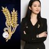 Broche elegante de estilo coreano con cristales de color oreja de cebada para mujer, joyería fina de alta gama con ramillete, alfiler para abrigo