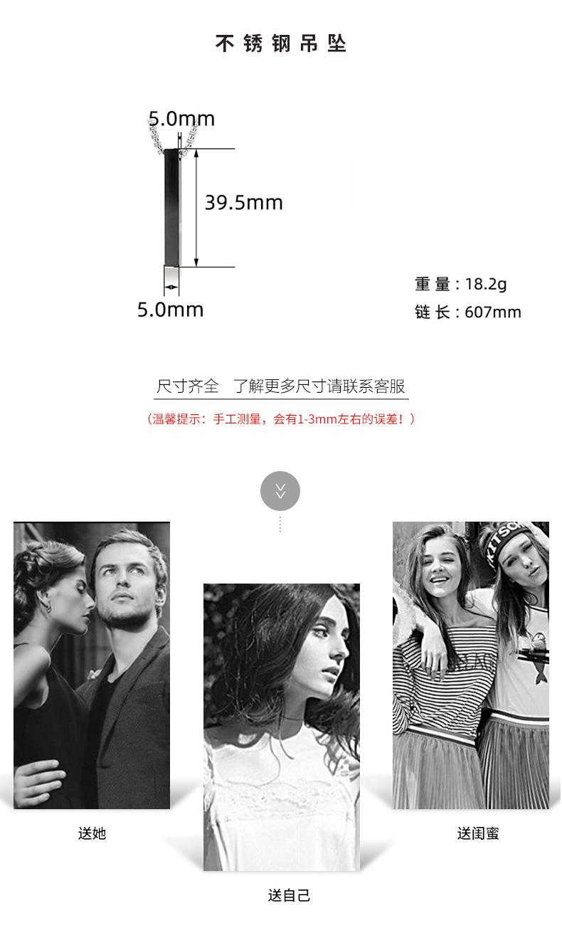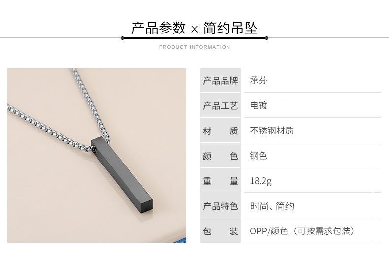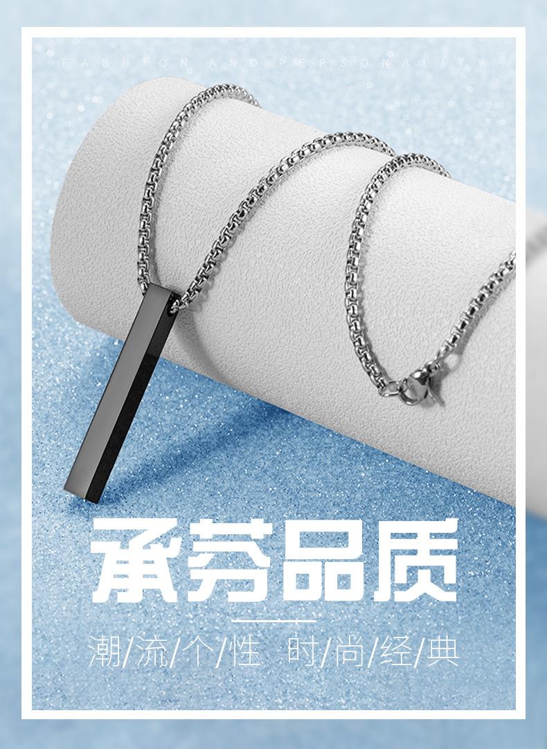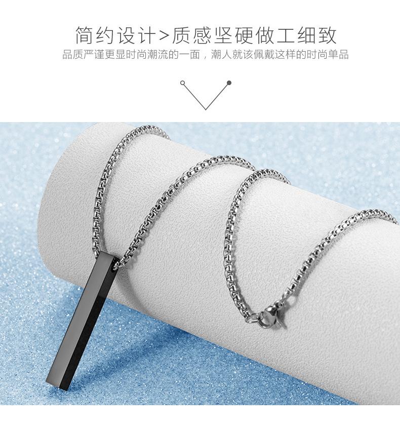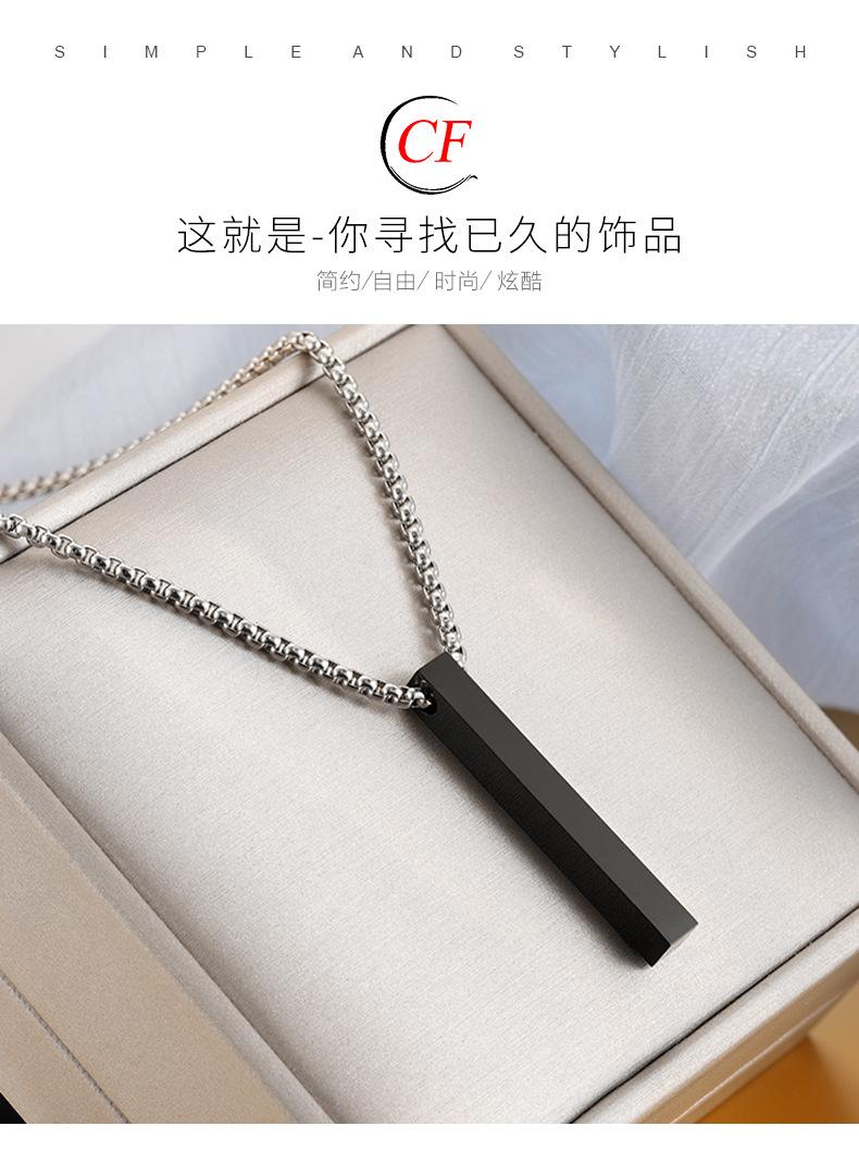 Colgante de acero inoxidable con forma de columna rectangular negra galvanizada popular transfronteriza, cadena de clavícula personalizada de moda para hombres y mujeres que no se decolora