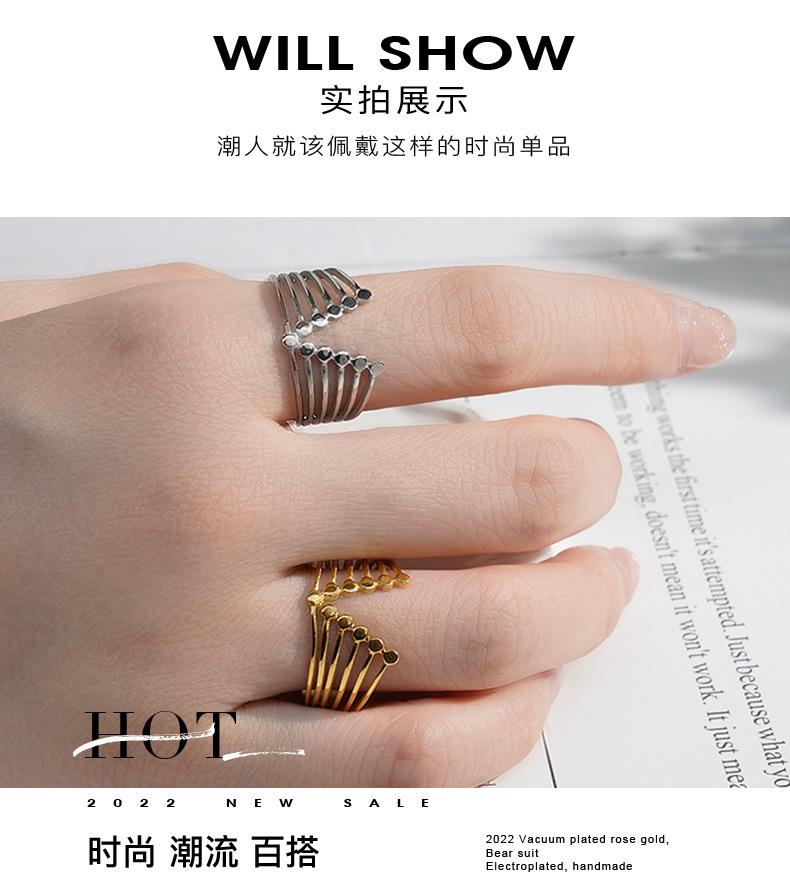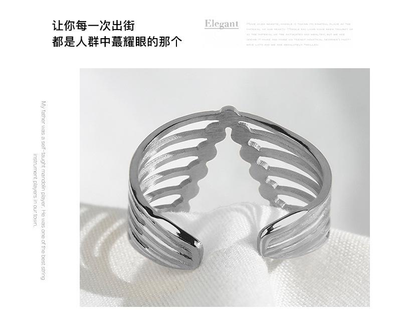 Anillo de acero de titanio de moda europea y americana con personalidad, anillo de acero inoxidable con apertura en forma de V, línea geométrica simple, joyería al por mayor