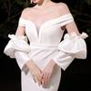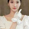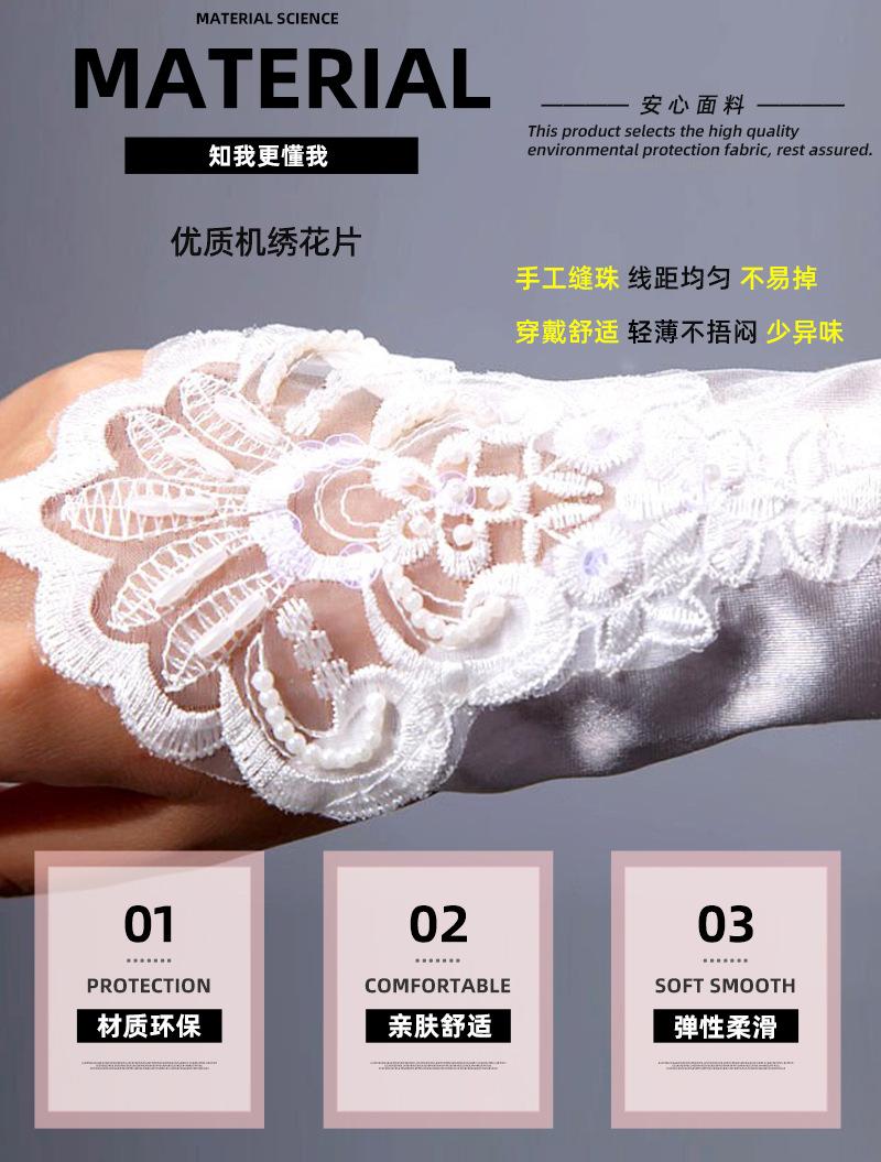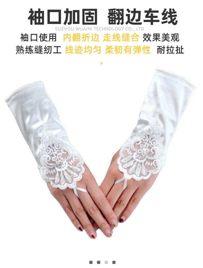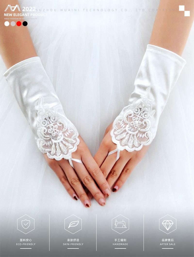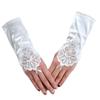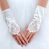 Guantes Cortos de Novia para Boda con Dedos con Gancho, Bordado de Satén, Encaje, Cuentas, Estilo Europeo y Americano para Fotografía de Boda y Celebraciones de Boda de Perla