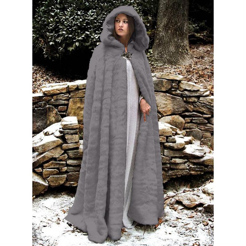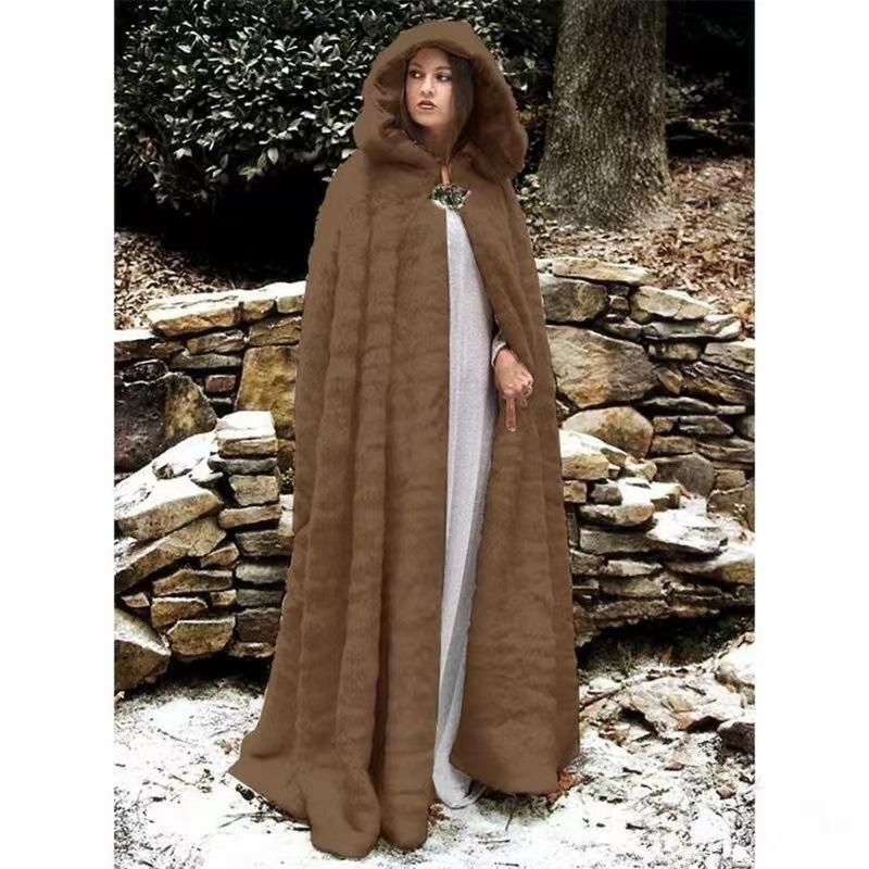 Europa y Estados Unidos transfronterizo otoño e invierno color sólido imitación lana con capucha largo ropa de mujer capa de actuación abrigo de moda