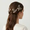 Horquilla para el cabello de novia de hoja nueva transfronteriza hecha a mano con diamantes de imitación y perlas en forma de U, accesorio para el cabello para estudio fotográfico, joyería para la cabeza